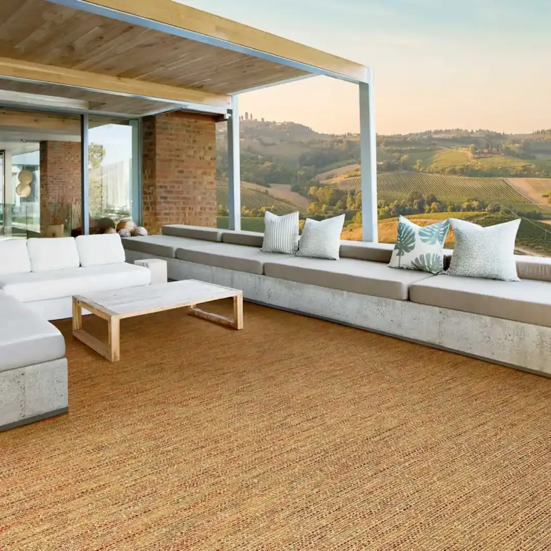 Alfombra Rainbow, un diseño sobresaliente para uso interior y exterior. Con sus hermosos tonos naturales acentuados con toques de color, esta alfombra se adapta de la mejor manera a cualquier espacio; ya sea terraza, salón o recibidor.