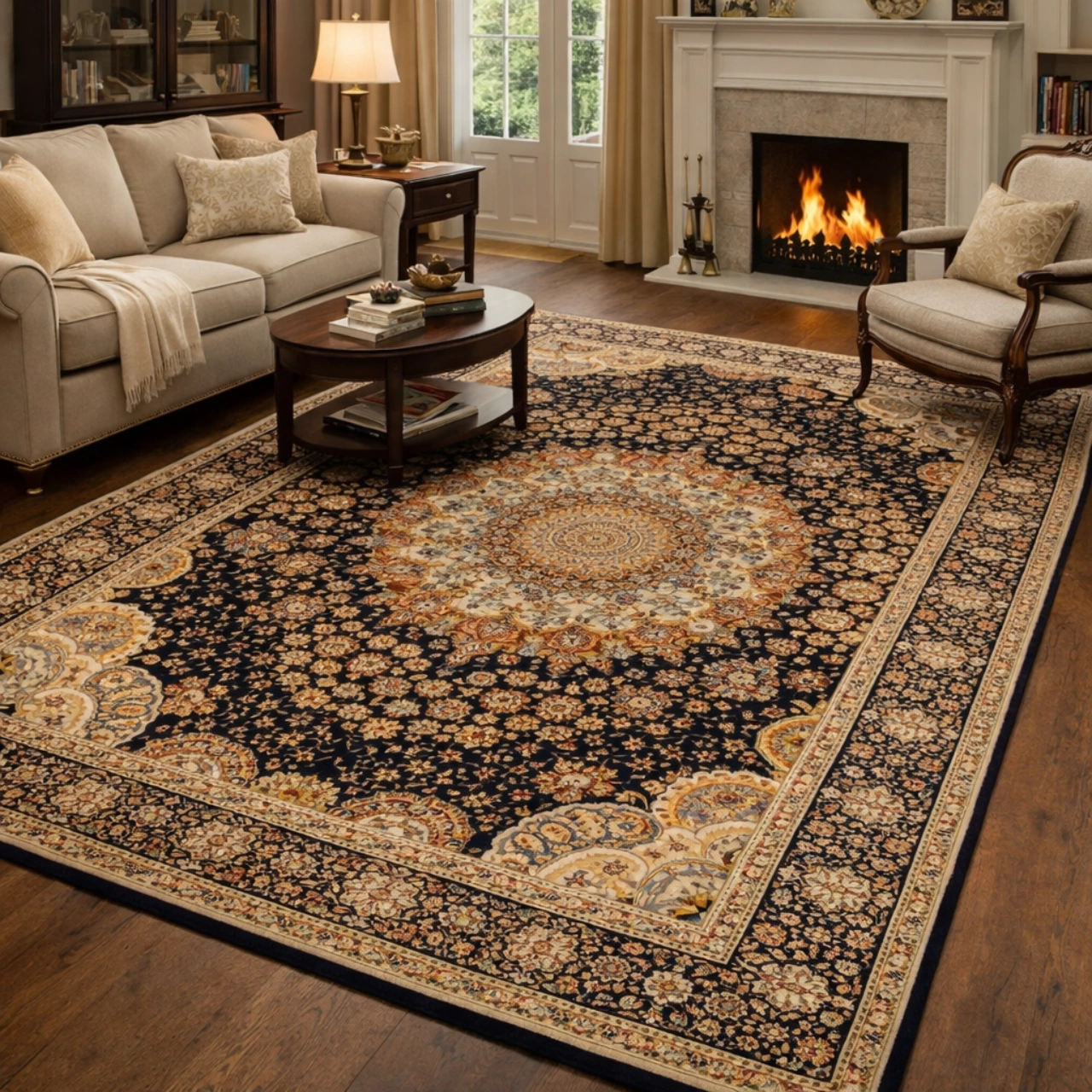 Explora la alfombra acrílica Palace estilo NAIN clásica, diseñada en Crevillente con una densidad de 2.000.000 puntos/m² que aporta resistencia y un acabado que recuerda a las piezas manuales. Su composición en 100% Polyacryl, su altura de 8 mm y su peso total de 2.450 gr/m² ofrecen un tacto cuidado y un aspecto definido en colores sólidos como azul-marino, beig y granate.