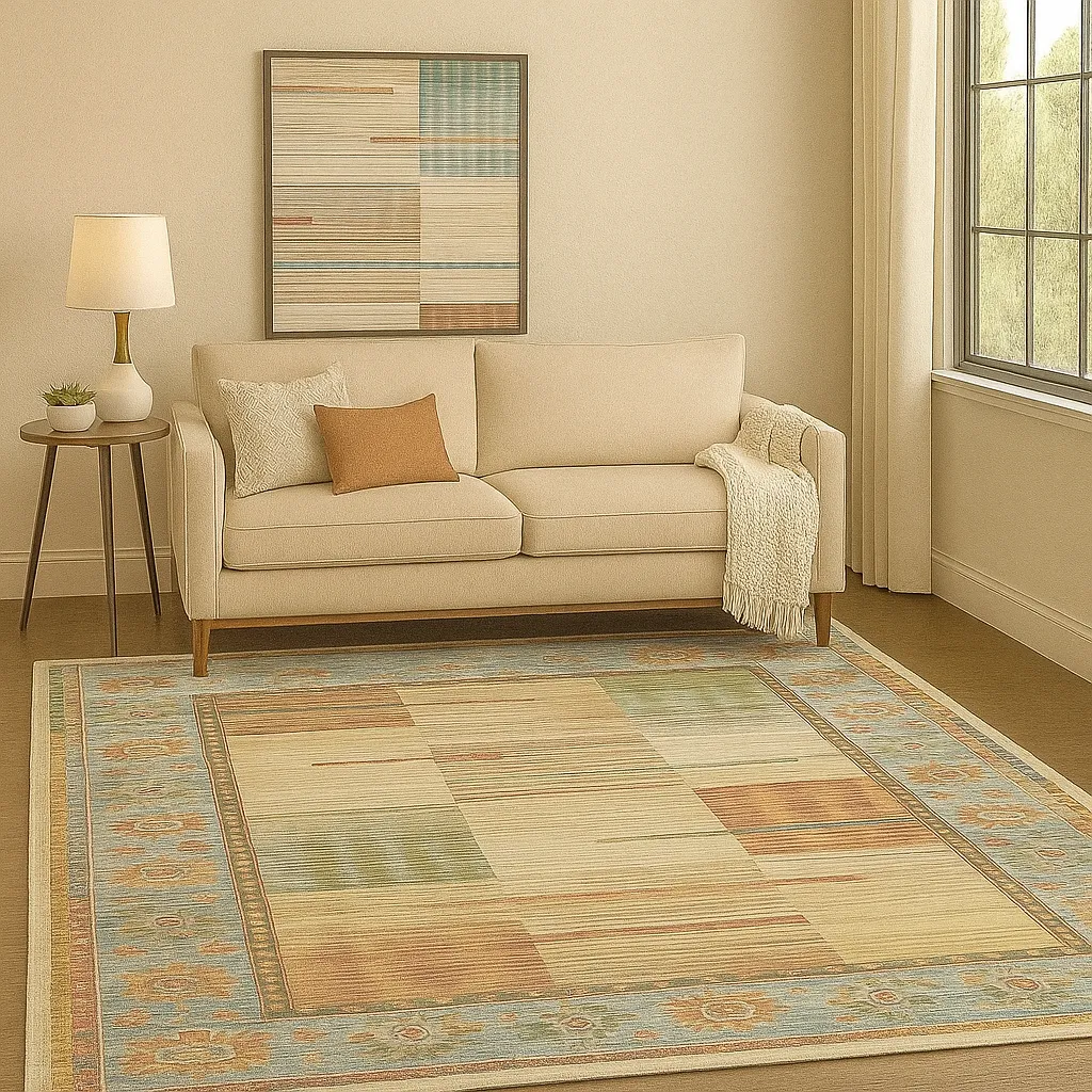 Su altura de 3 mm permite integrar la alfombra en salones, pasillos o dormitorios sin interferir con puertas.