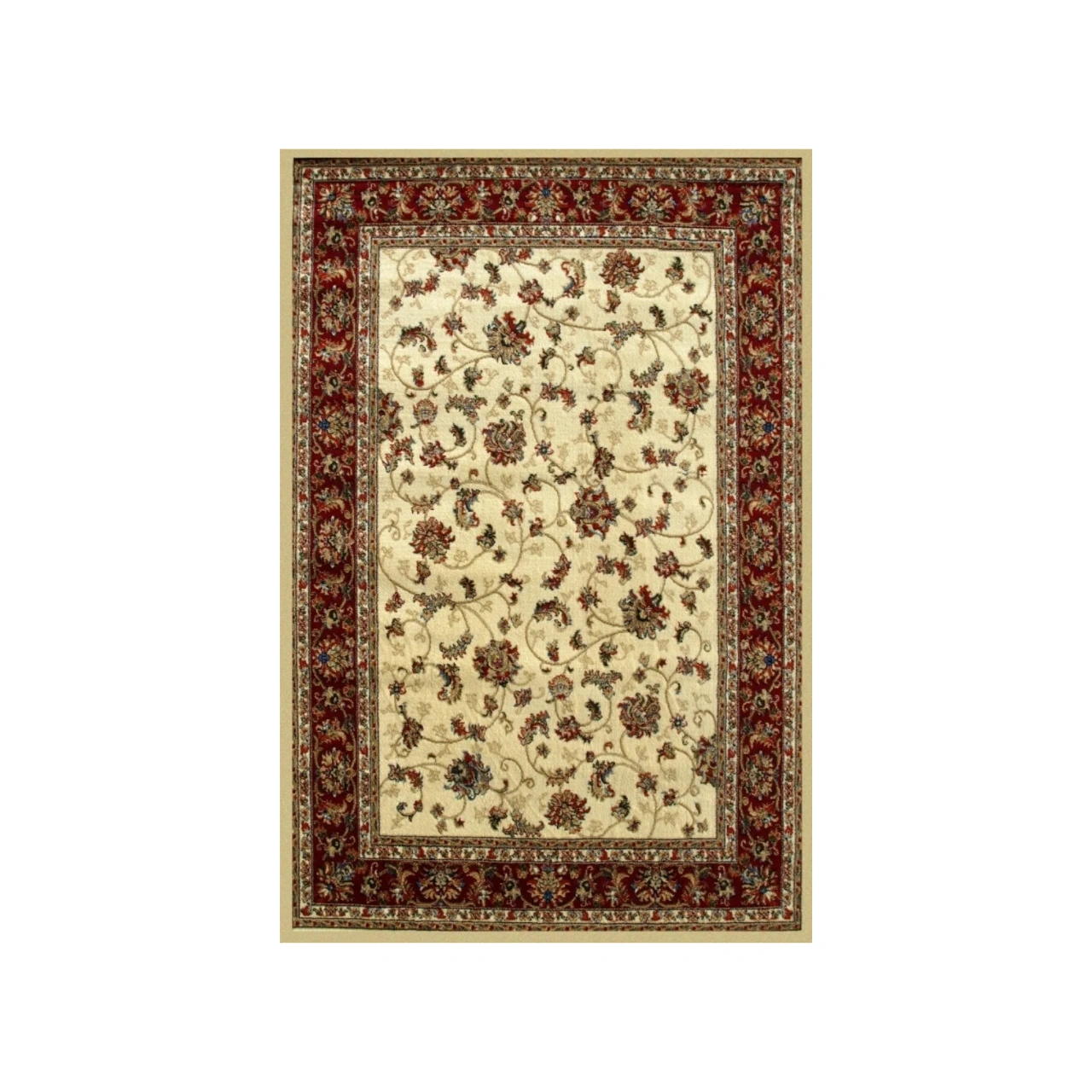 Apuesta por una alfombra acrílica de estilo Persa que combina colores tradicionales y materiales de calidad como el 100% Poliacril Heat-Set, ofreciendo una superficie suave y resistente con 330.750 puntos/m² y una altura total de 13 mm. Su diseño en tono beig o granate se integra con facilidad en dormitorios, pasillos o salones.