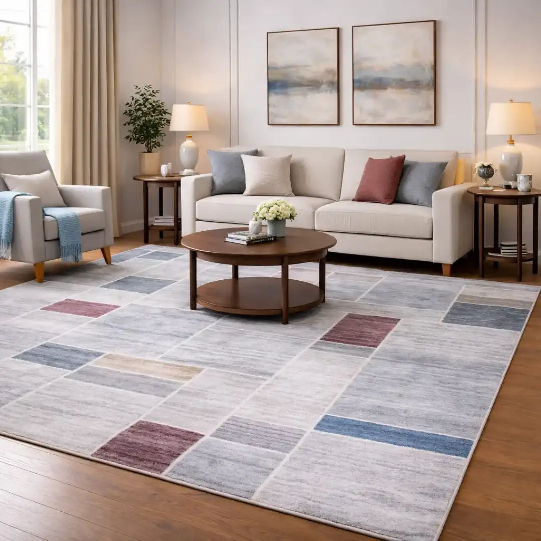 Disponible en varias medidas para adaptarse a cada espacio, incluyendo 133×195 cm, 120×170 cm, 160×230 cm, 200×290 cm y 80×150 cm, es una alfombra decorativa pensada para salones y recibidores que buscan calidad, diseño moderno y fácil integración en el hogar.