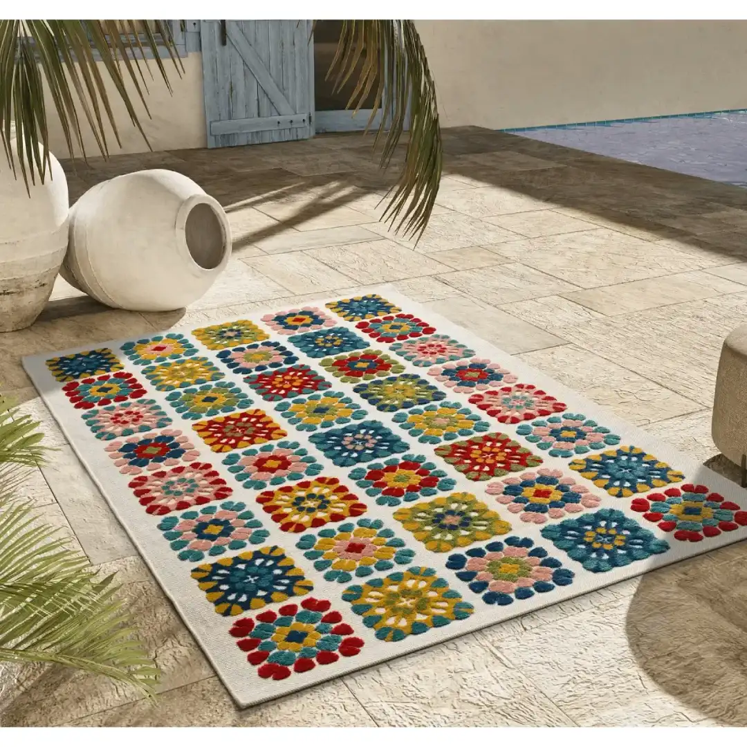 MILA es sinónimo de durabilidad, resistiendo a condiciones extremas como la exposición al sol y al agua. Destaca por su versatilidad, convirtiéndose en un elemento de decoración que dará personalidad a tus espacios y captará la atención de quien la observe. Transforma tu hogar o tu espacio exterior con MILA, la alfombra que combina funcionalidad, resistencia y un diseño impresionante.