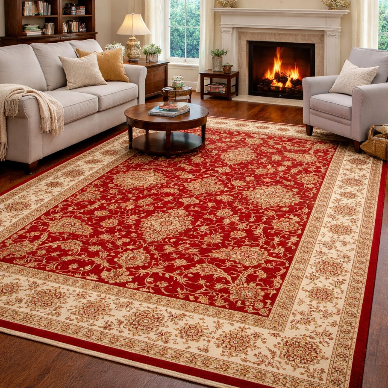 Disponible en varias medidas, incluida 60X120, se adapta a pie de cama, pasillos o salón, completando el espacio con un estilo auténtico en tonos BEIG o GRANATE.