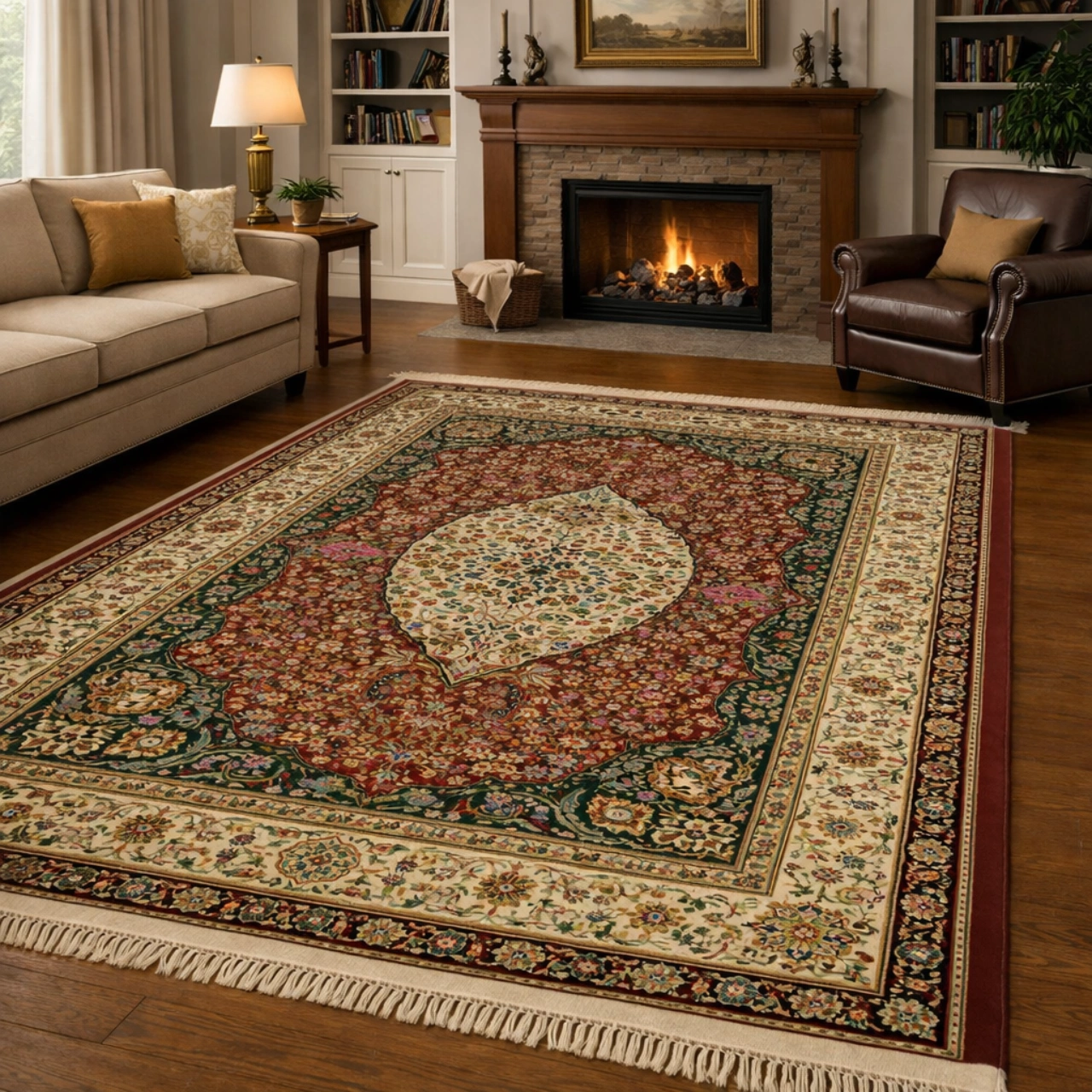 Explora la esencia clásica de la alfombra Persia, elaborada en Crevillente con pura lana virgen y acabados de inspiración oriental. Su estructura de 13 mm de altura y 740.000 puntos por metro cuadrado aporta definición y un tacto cómodo para distintos espacios del hogar.