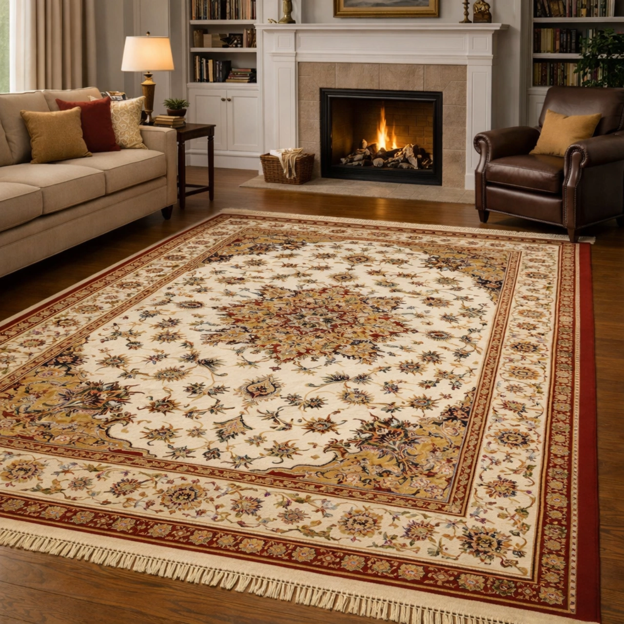 Explora la elegancia atemporal de esta alfombra Persia NAIN, fabricada en Crevillente con pura lana virgen y materiales nobles que garantizan durabilidad. Su diseño clásico en tono Beige aporta un estilo discreto y sofisticado para ambientes que buscan carácter sin excesos.