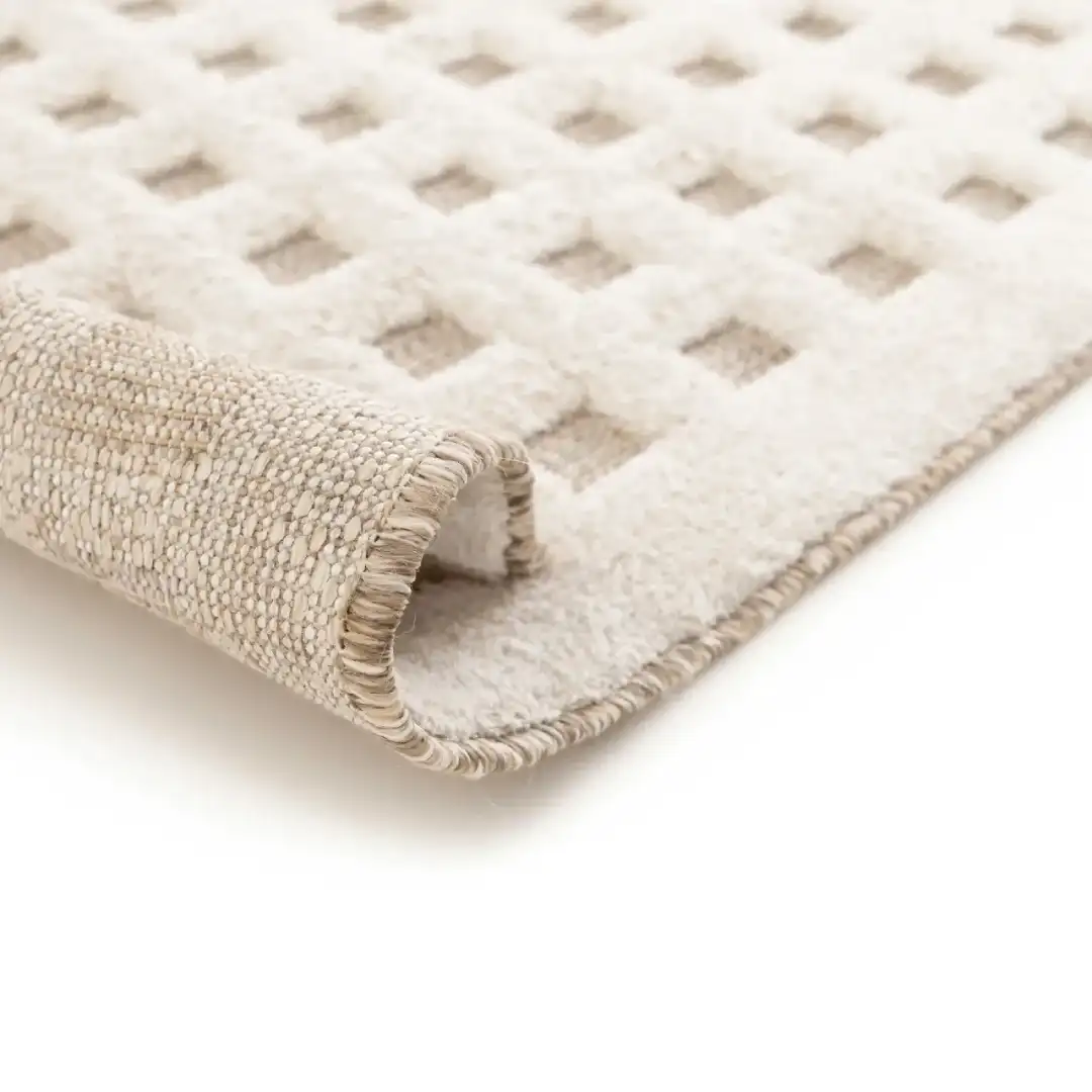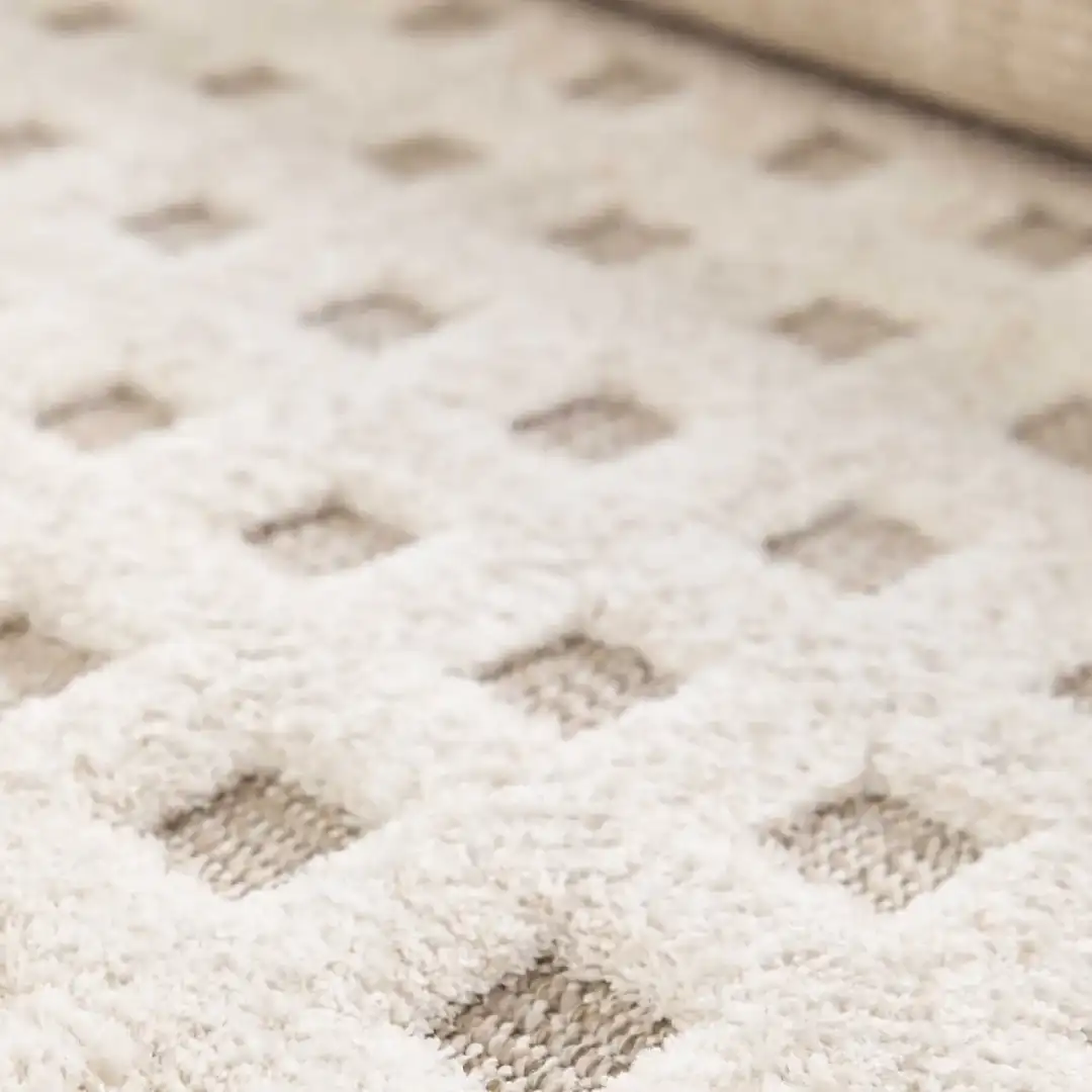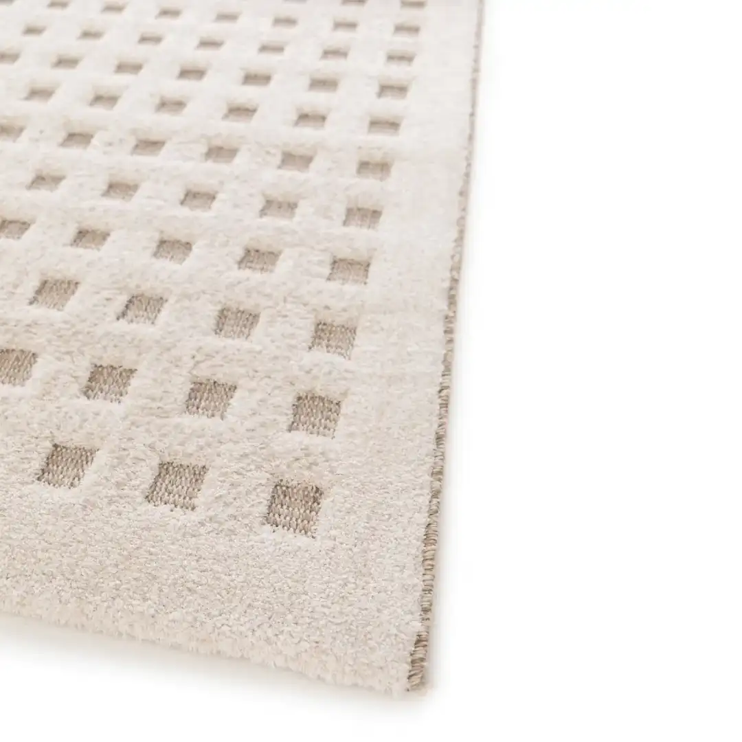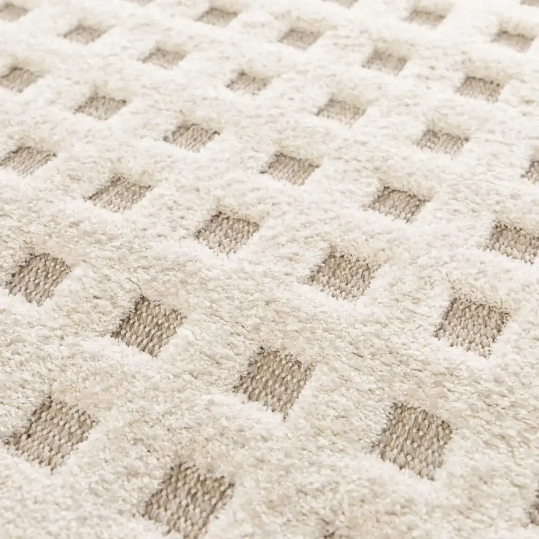 Alfombras DIENA se distinguen por su creatividad y textura, añadiendo un aspecto distintivo a tu hogar. Los patrones étnicos y geométricos en tono crema realzan intensamente contra la trama, transformando esta alfombra en el accesorio perfecto para cualquier espacio.