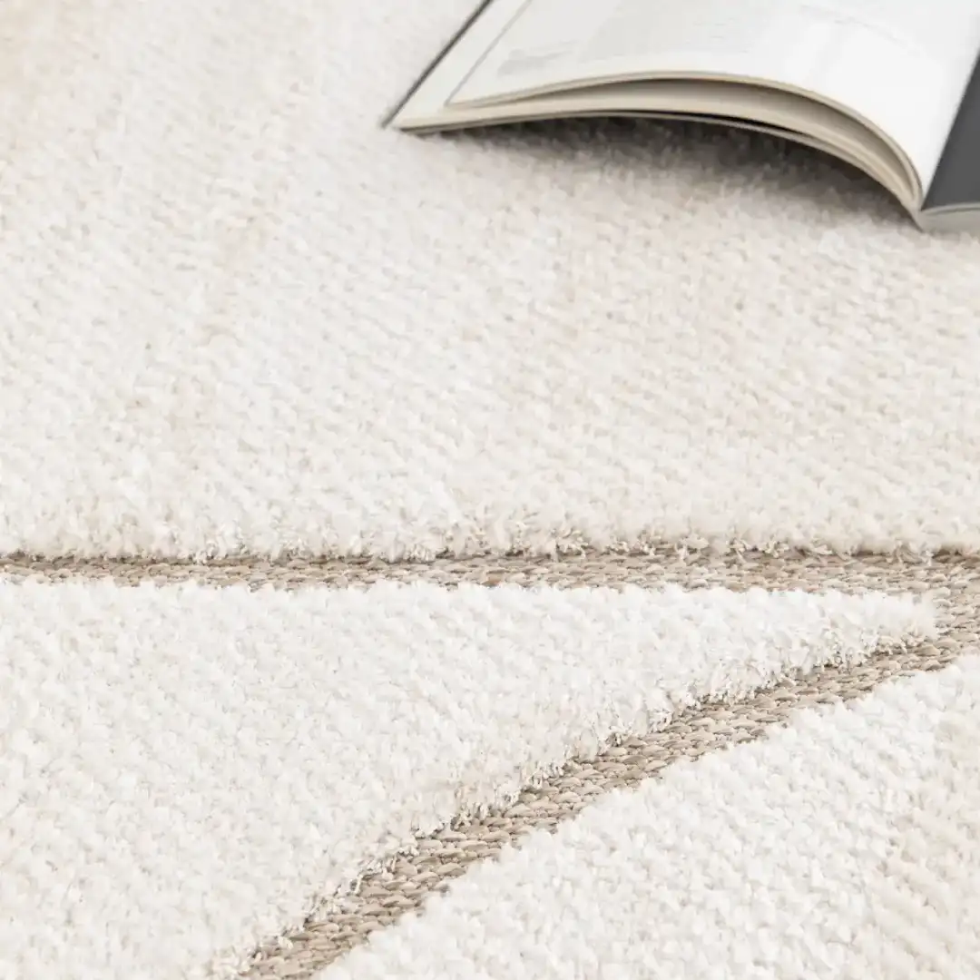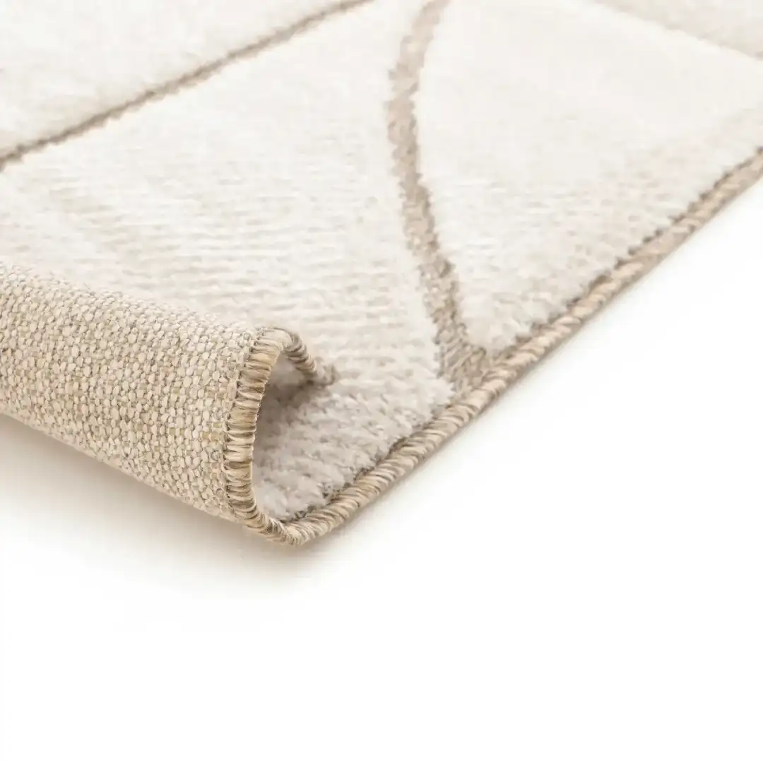 Alfombras DIENA se distinguen por su creatividad y textura, añadiendo un aspecto distintivo a tu hogar. Los patrones étnicos y geométricos en tono crema realzan intensamente contra la trama, transformando esta alfombra en el accesorio perfecto para cualquier espacio.