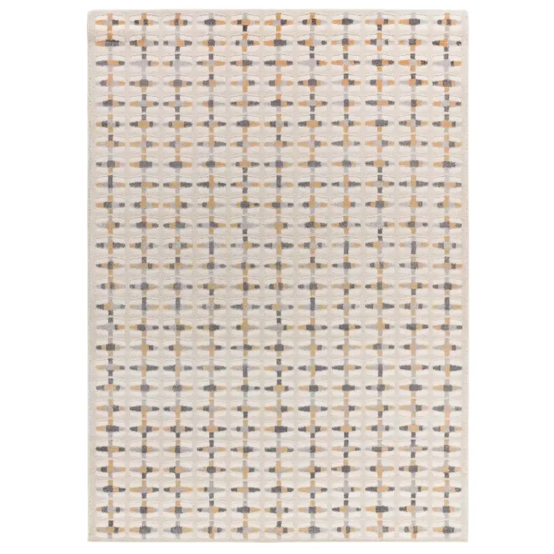 Diseño geométrico con relieve pensado para una alfombra de salón que encaja en interiores modernos, aportando presencia visual sin sobrecargar el espacio. Su estética multicolor añade dinamismo y se adapta con facilidad a distintas decoraciones actuales.