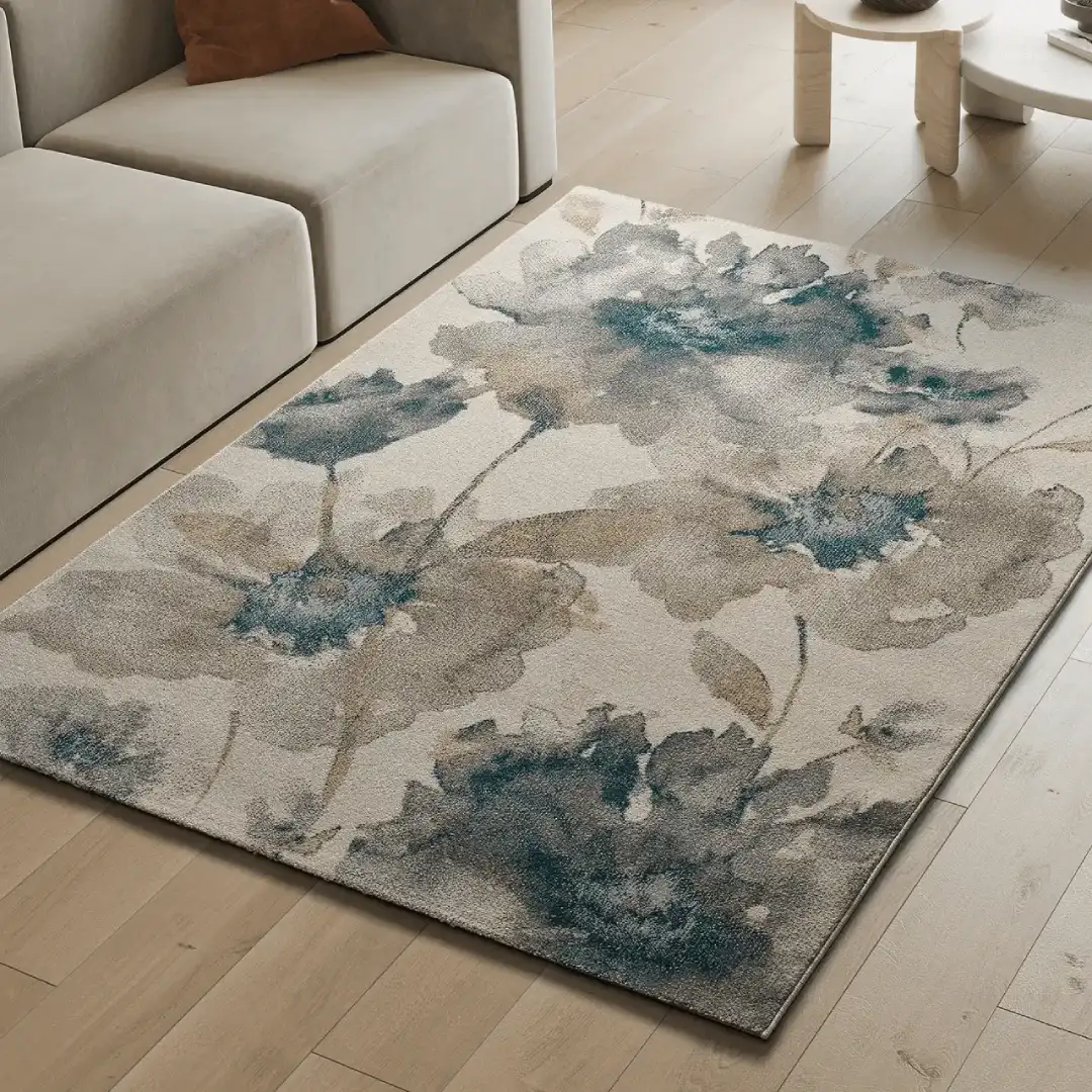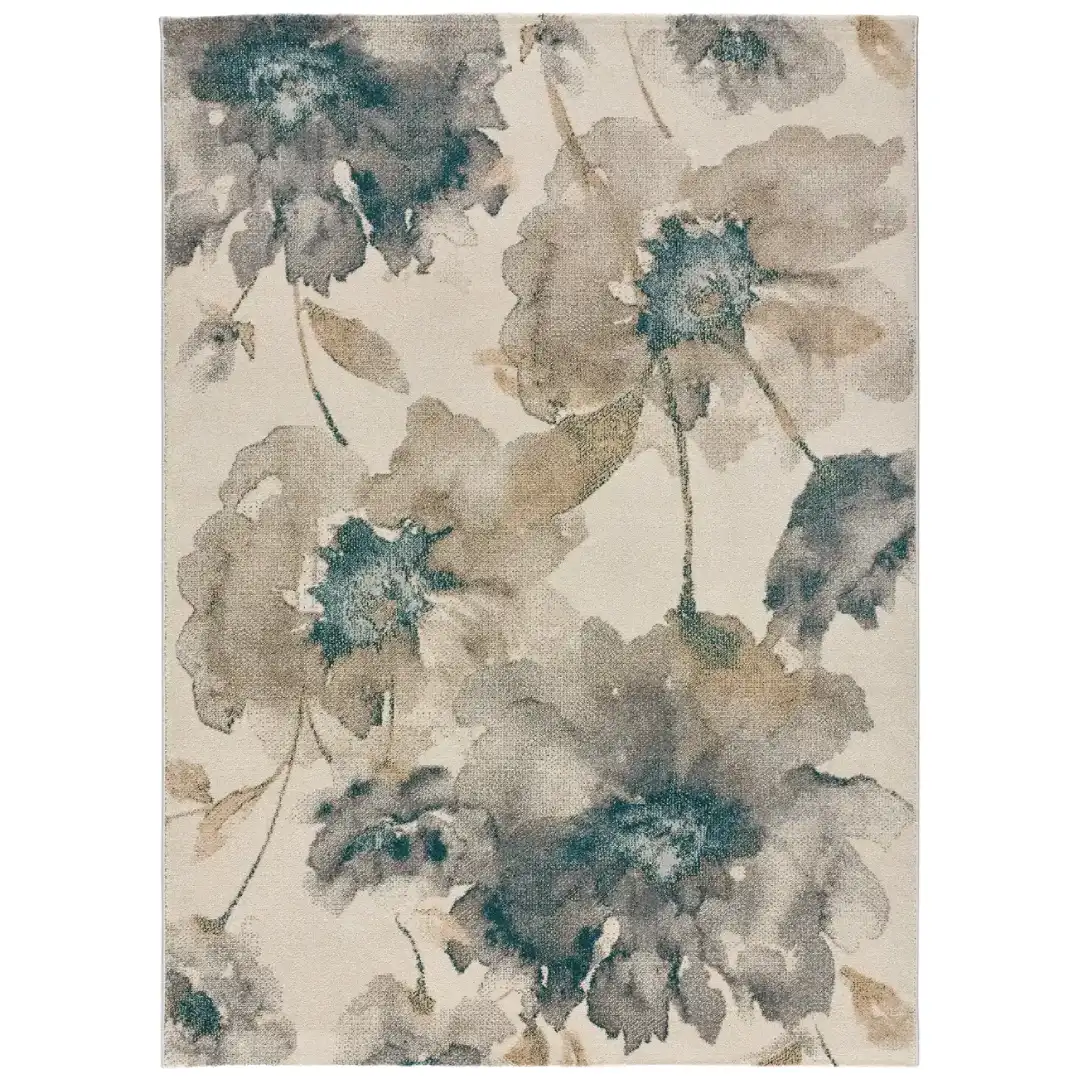 Alfombra Sara floral en multicolor, ofrece una mezcla de colores crema, grises y azules que recrea la belleza natural en su hogar. Esta pieza versátil se adapta tanto a espacios de relajación como salones o dormitorios, añadiendo un toque moderno y elegante.