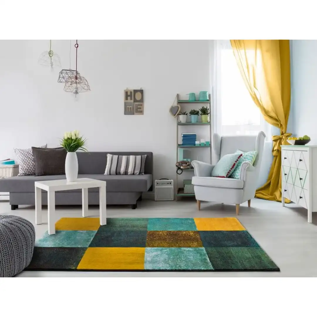 Explora una alfombra geométrica pensada para realzar tu salón con un diseño de cuadros multicolor que combina estética moderna y calidad. Disponible en 60×120, 80×150, 120×170, 140×200, 160×230 y 200×290, se adapta con facilidad a distintos espacios y necesidades decorativas.