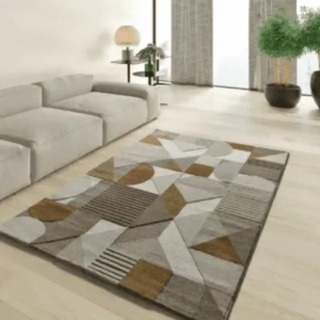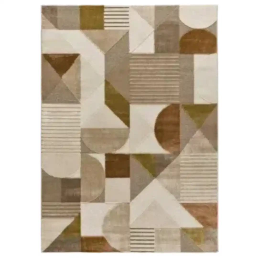 Estética y comodidad se fusionan en nuestra colección de alfombras MELFI. Invita a la calidez y al estilo a tu hogar a través de esta alfombra en relieve con diseño geométrico. Su combinación única de colores tierra, toques cobrizos y ocres crea un atractivo visual que acentuará cualquier espacio en tu hogar.