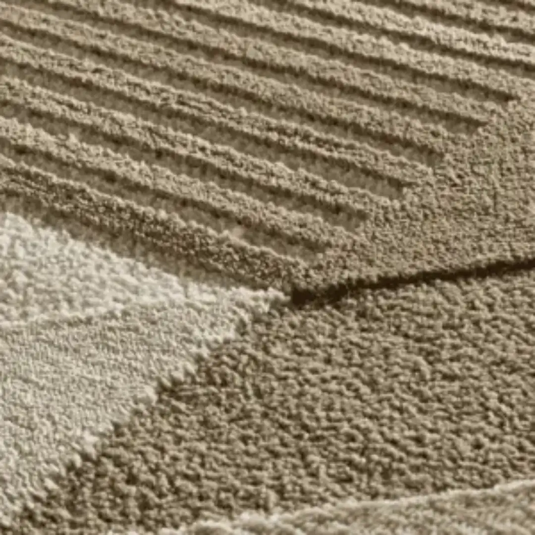 Transforma tu hogar con la elegancia de nuestra colección de alfombras MELFI. Una pieza clave, con pliegues geométricos en una gama de tonos naturales, cobrizos y ocres. Esta alfombra no solo añade un acento refinado a cualquier espacio, sino que también ofrece un increíble confort.
