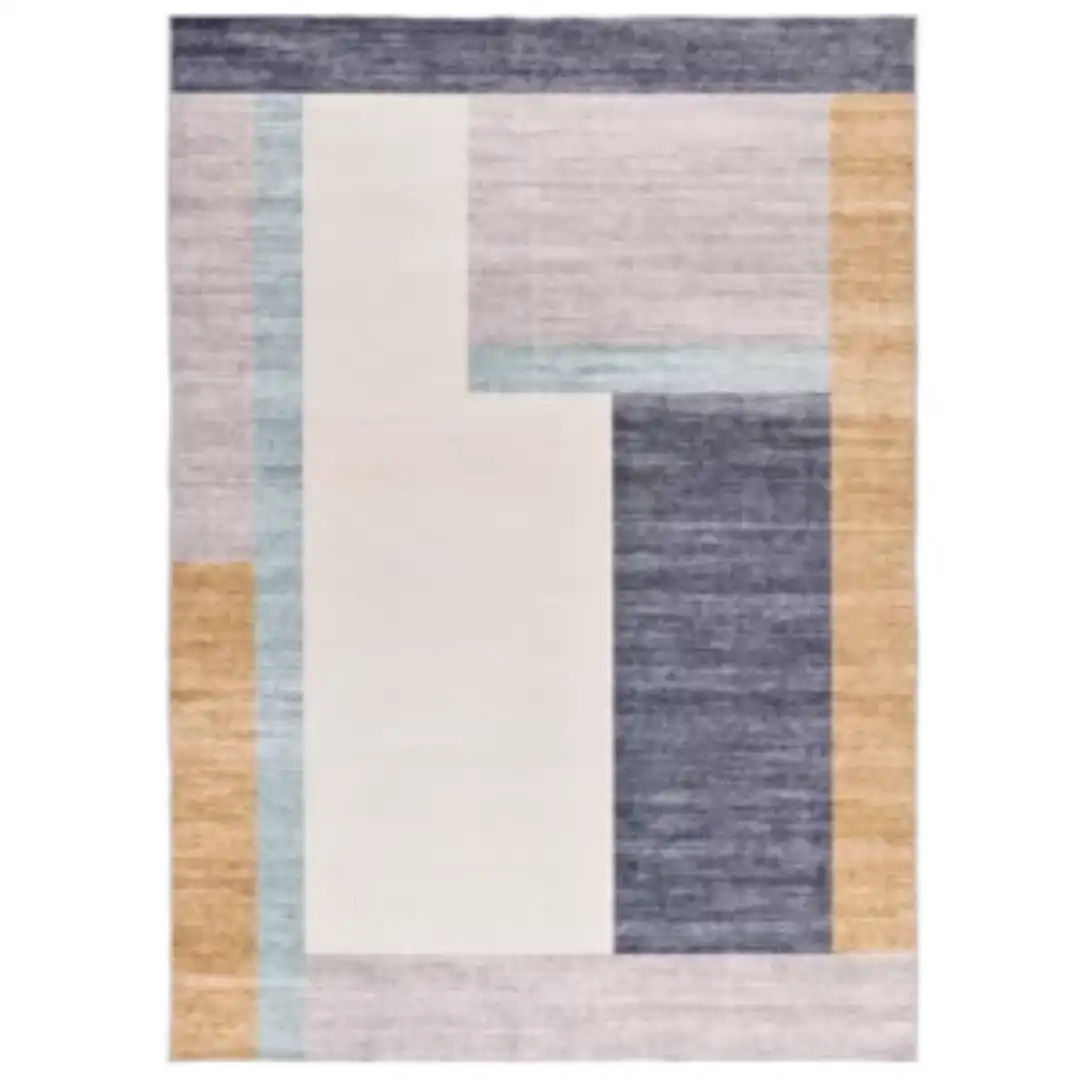 Con nuestra alfombra CLASS geométrica, renovarás tu espacio de forma instantánea, creando ambientes llenos de encanto. Este adorno imprescindible para el hogar ofrece una combinación única de tonos azul, naranja y crema, que inspiran calidez y armonía.