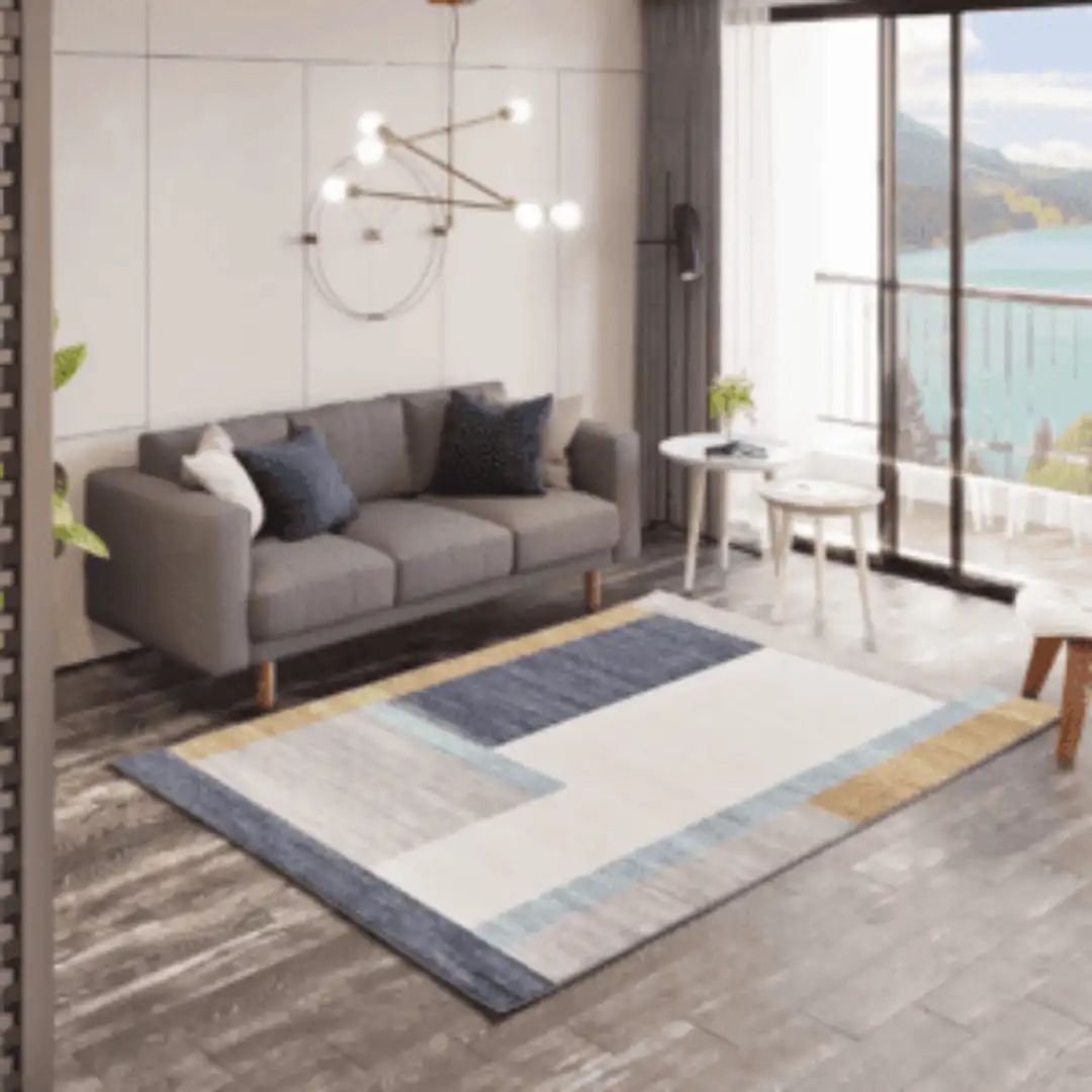 Su durabilidad excepcional se debe a la óptima fabricación en poliéster de alta calidad y un robusto respaldo de fieltro. La disposición de dibujos cuadrados y rectangulares genera un impacto visual de vanguardia, ideal para complementar cualquier lugar.