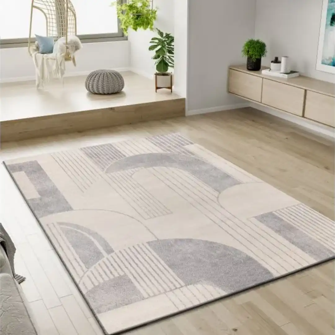 Explora la Alfombra Geométrica Porto 12917 19 Plata, una pieza moderna pensada para realzar salones con un diseño actual y una textura heat-set frisé que aporta suavidad y resistencia. Su reverso de yute mantiene la superficie estable y duradera, ideal para espacios de uso frecuente.