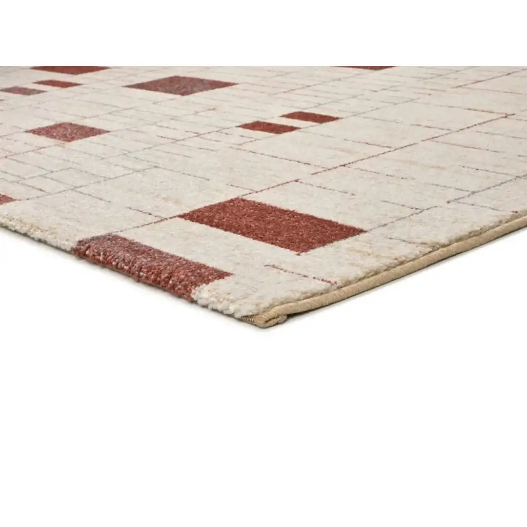 Aporta carácter al salón con la Alfombra Geométrico Beruti 12920 05 Caldera, diseñada en clave moderna y disponible en 80×150, 133×190 y 160×230. Su superficie de 100% PP heat-set frisé ofrece un tacto agradable y un aspecto definido que potencia cada detalle del patrón geométrico.