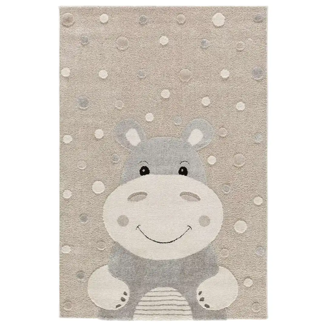 Explora la alfombra infantil Clown 2345 42 Piedra, diseñada para aportar un toque acogedor al dormitorio gracias a su composición 50% PP y 50% PES, con soporte de yute y un método de fabricación incorporado a doble cara que refuerza su durabilidad.