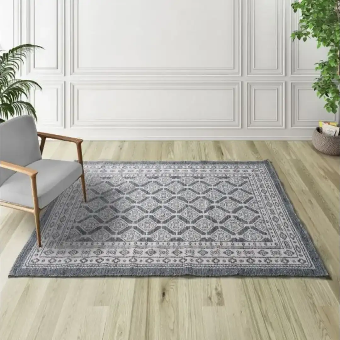 Aporta carácter a tu espacio con la alfombra Kilim Chandia 1089 07 Azul, diseñada para realzar cualquier salón contemporáneo dentro de las tendencias modernas. Disponible en 80×120, 120×170 y 160×230, se adapta con precisión a distintas necesidades decorativas.