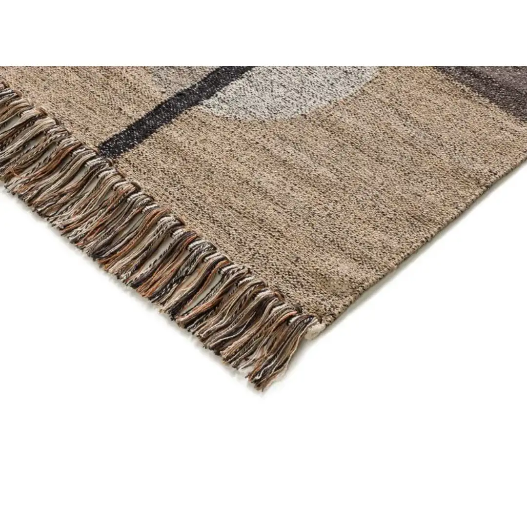 Explora la alfombra Kilim Chandia 1120 21 Multi, un diseño moderno elaborado a mano con 100% algodón texturizado reciclado que aporta una estética natural al salón. Su entramado de 0 puntos/m2 y un pelo de 3 mm garantizan una superficie ligera y de fácil mantenimiento.