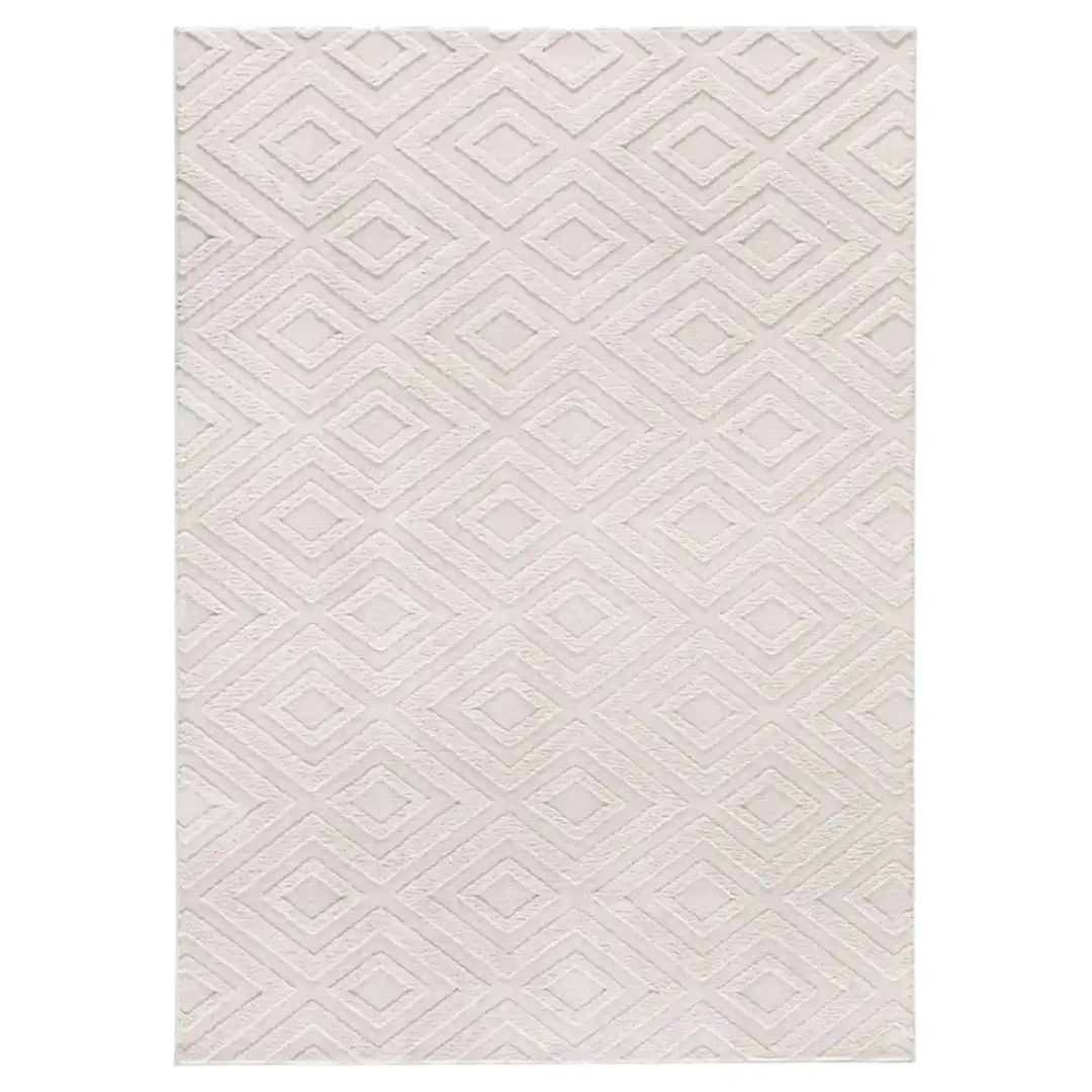 Explora una alfombra moderna de poliéster, diseñada con técnica de tufting y disponible en 60×110, 80×150, 120×170, 160×230 y 200×290. Su reverso antideslizante aporta estabilidad y su pelo de 12 mm ofrece una textura suave adecuada para el salón.