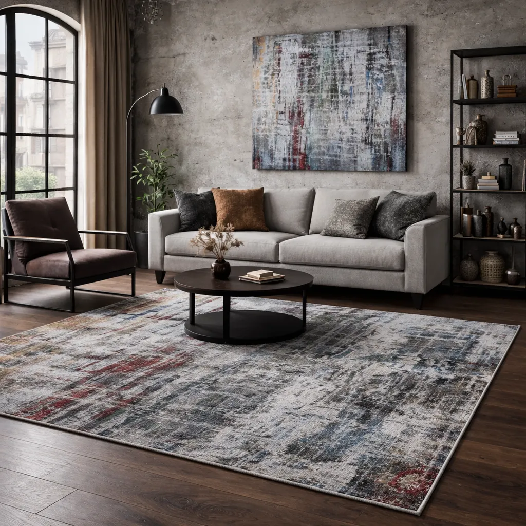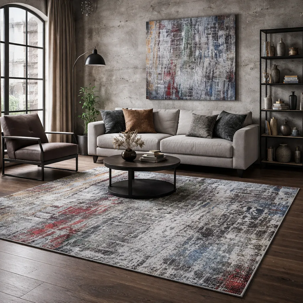El diseño abstracto y moderno se apoya en una construcción de 320.000 puntos/m2 y una altura de 12 mm, logrando una superficie duradera y agradable al paso. Una propuesta pensada para interiores actuales que buscan calidad y estilo sin artificios.