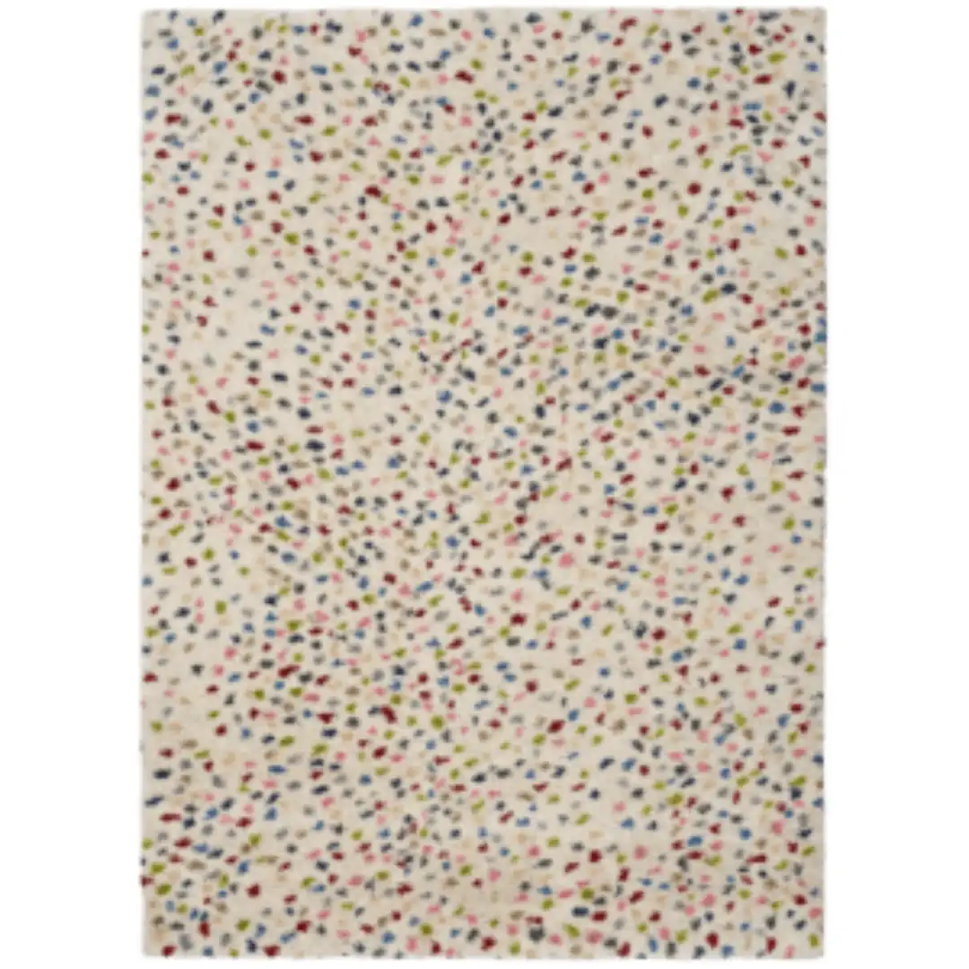 Alfombra Shaggy Kasbah Multicolor, una opción moderna y vibrante para tu salón o dormitorio. Esta pieza, producida en España, cuenta con esferas coloridas esparcidas para realzar cualquier espacio con su estética. El diseño de doble cara favorece su durabilidad y versatilidad, proporcionándote una adición funcional y elegante a tu hogar.