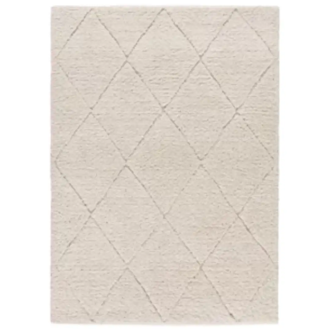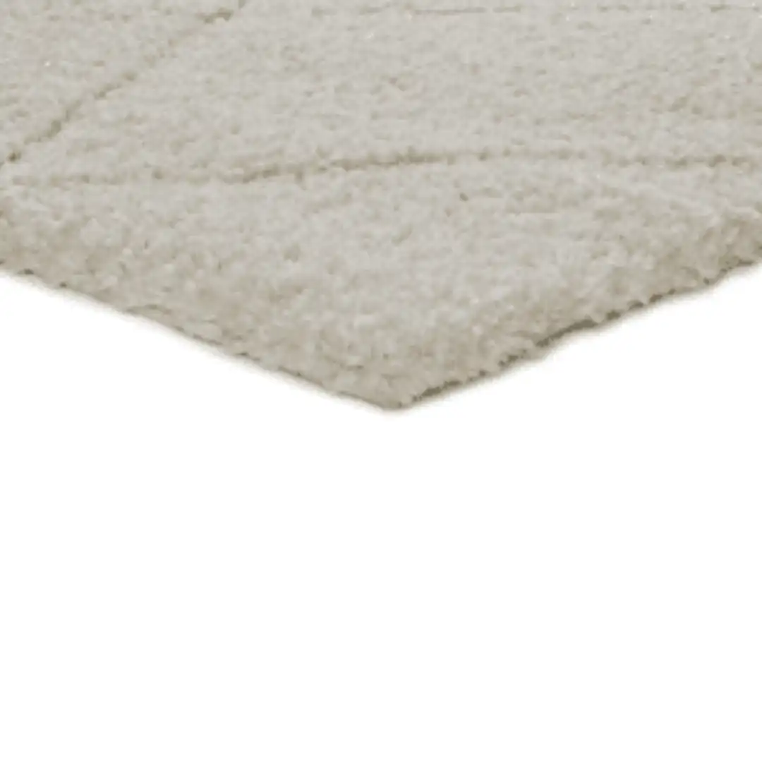 Alfombras ATESA, el inicio perfecto para revitalizar y darle vida a tus ambientes. Este producto, de pelo alto y toque escandinavo, incorpora un diseño en rombos en tonos blancos que hará tu salón o dormitorio lucir con autenticidad.