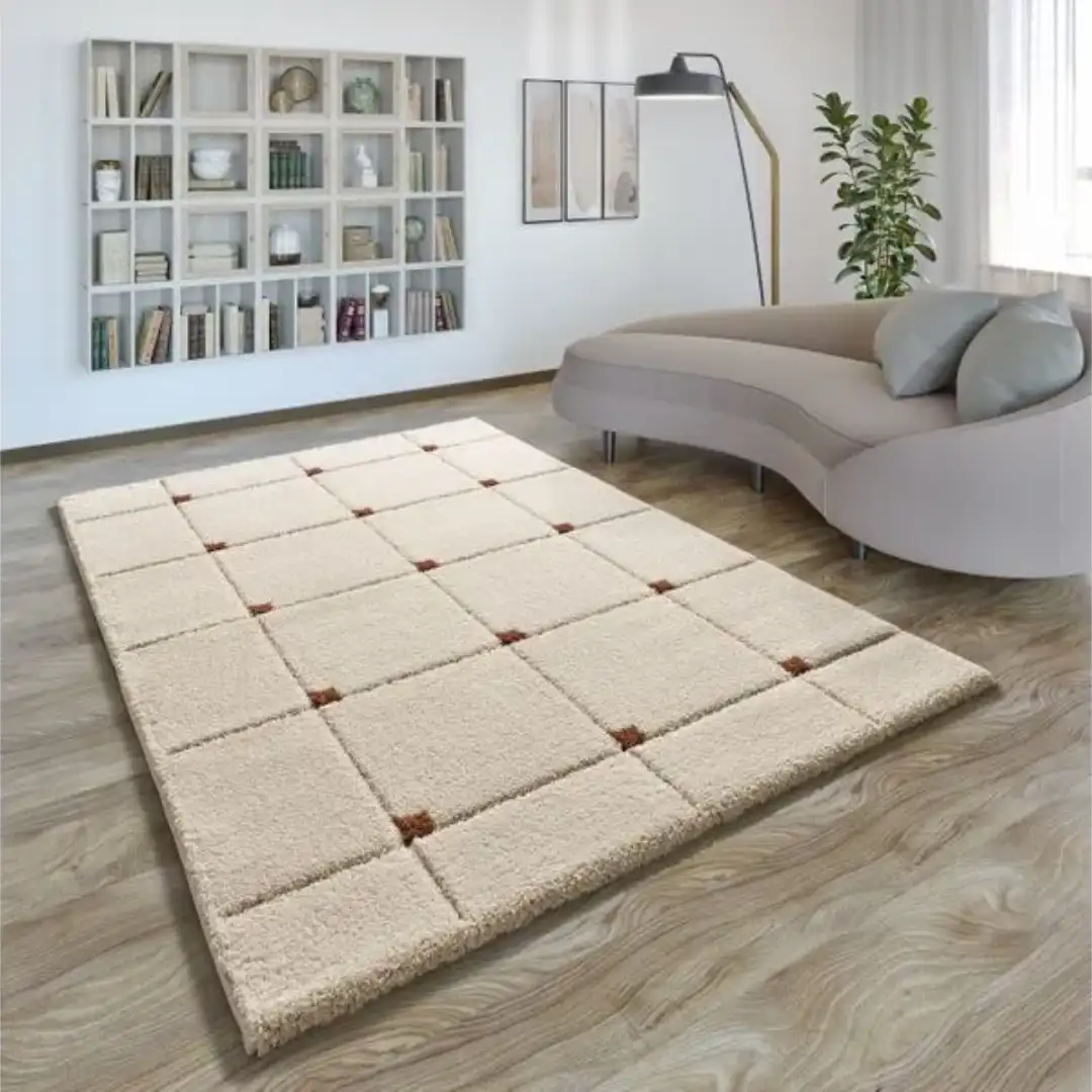 Apuesta por la Alfombra Shaggy Estilo Geométrico Brenda 8830 05 Caldera, diseñada para aportar un acabado moderno al salón con materiales de 100% PP heat-set frisé y soporte de yute. Su entramado de 198.000 puntos/m2 y el pelo de 25 mm garantizan una superficie agradable y visualmente atractiva.