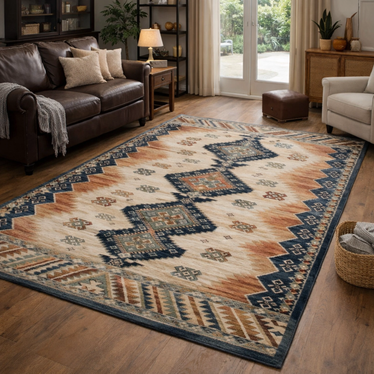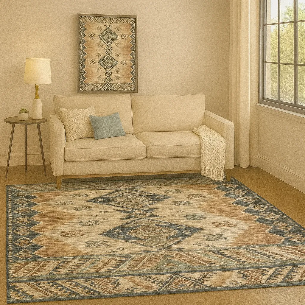 Pensada para quienes buscan una alfombra mod.Palace con estilo y durabilidad, este modelo combina viscosa y algodón para lograr una textura suave y unos tonos azules intensos que realzan cualquier espacio. Su base antideslizante añade estabilidad sin alterar su ligereza.