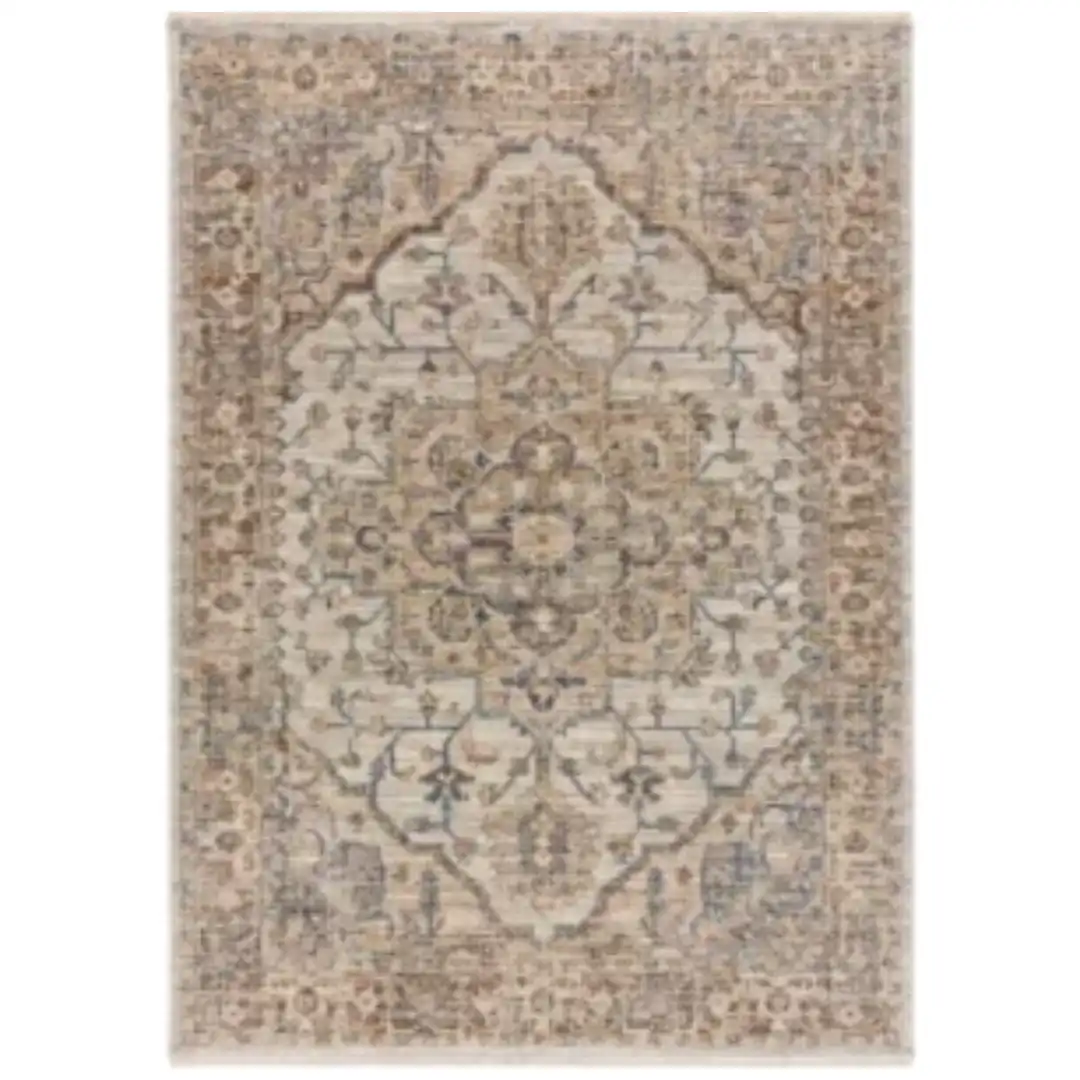 Alfombra SAMARKAND, una obra maestra de diseño con inspiración vintage. Con su acabado en flecos, se convierte en la pieza clave para aportar un aire actual y estilizado a tu espacio vital. Su patrón que combina colores beige y gris refleja la tendencia del momento, creando una atmosfera única.