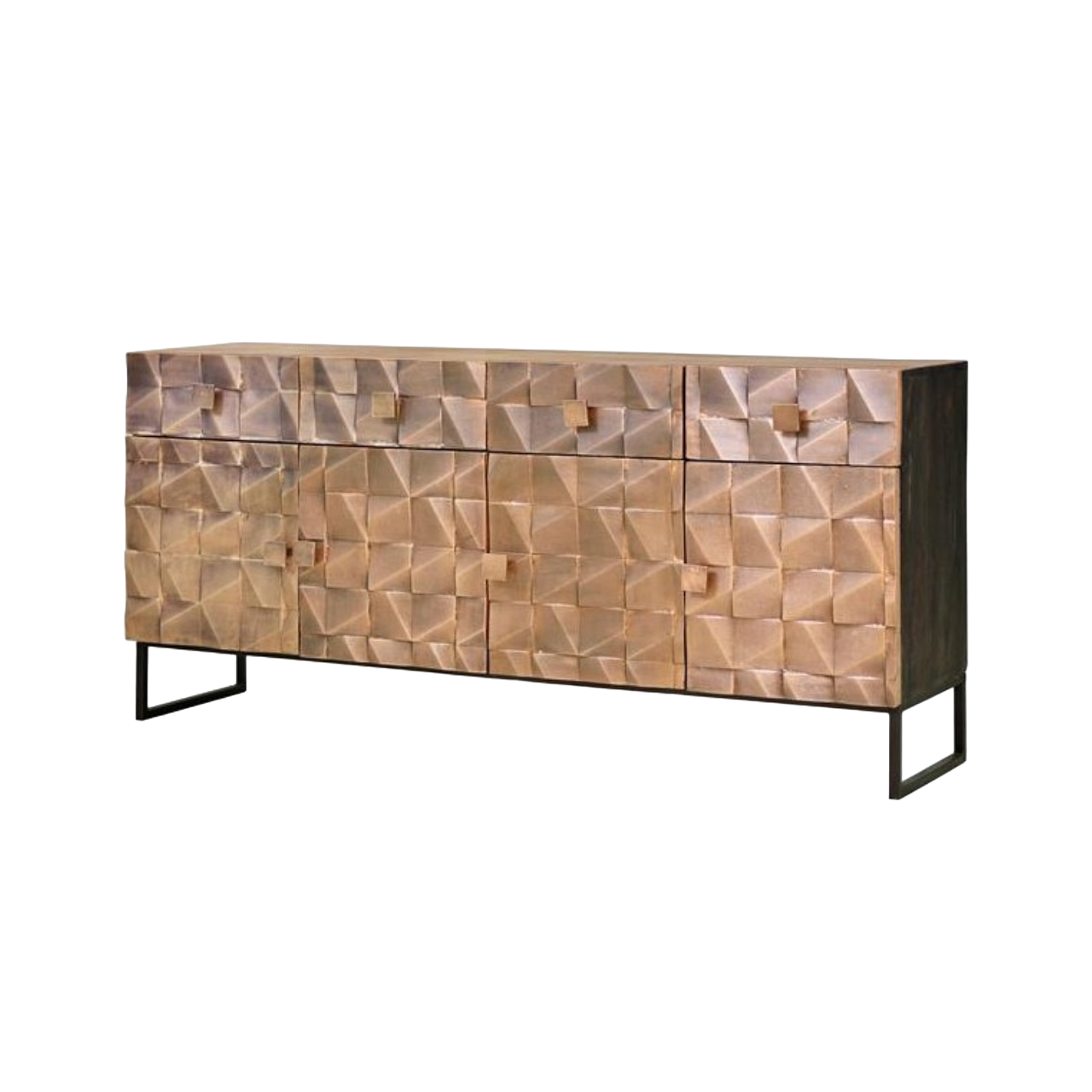 Presentamos este aparador robusto con un toque refinado, que cuenta con 4 puertas y 4 cajones, proporcionando espacio de almacenamiento adicional en su hogar. Fabricado en madera de mango macizo, conocida por su durabilidad, este mueble está diseñado para resistir el paso del tiempo.