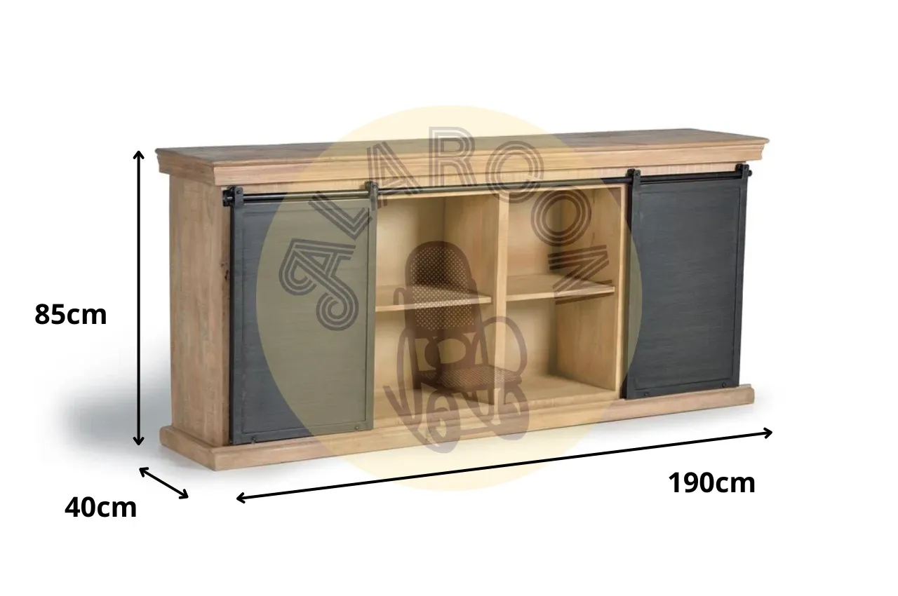 Este aparador se destaca adicionalmente por su no requirimiento de montaje, lo que lo convierte en inseparable en cuanto haga su entrada en tu casa. Su marcado diseño industrial intensificará la personalidad de cualquier entorno, y lo trascenderá elevándolo elegante e interesante. Funcional y estilizado, no busques más, este aparador es la adición perfecta que equilibra forma y utilizad.