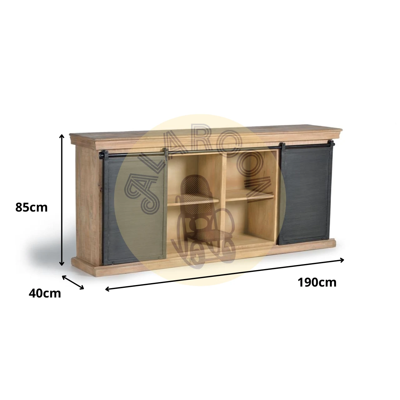 Exhibiendo su casi artística funcionalidad, este mueble presume de 6 cajones y 2 puertas corredizas de metal negro. Aportando no solo utilidad sino también diversidad a tu espacio, estructurará tu entorno a la vez que ofrece amplio almacenamiento. Cada detalle, desde su naturaleza de mandadera maciza hasta sus detalles metálicos negros, profundizarán el aire distintivo de tu hogar.