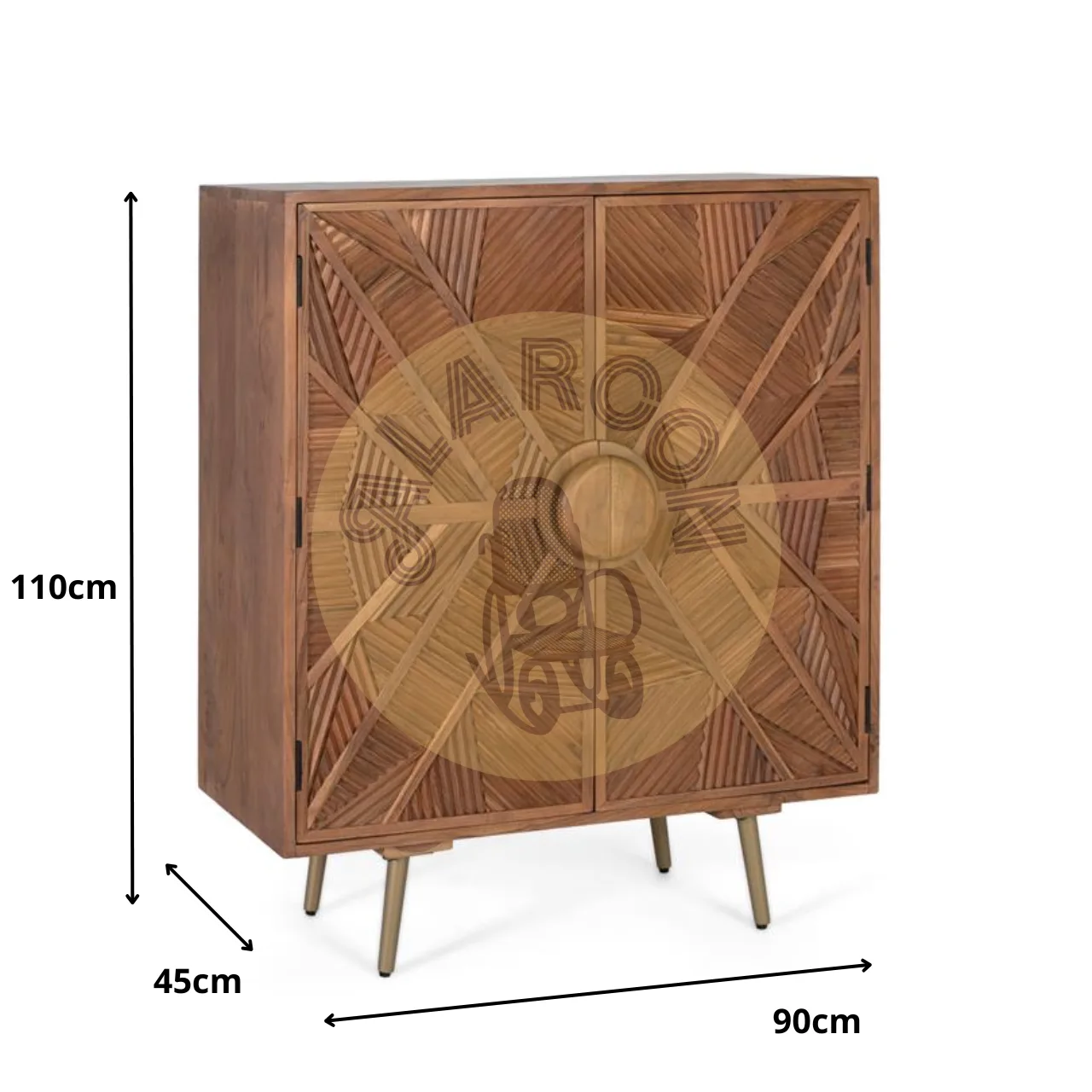 Con medidas de 110x90x45 cm, este mueble ofrece un interior práctico con baldas de almacenaje, perfecto para organizar y mantener en orden tu hogar. Una pieza decorativa y funcional que realza el estilo de tu espacio.