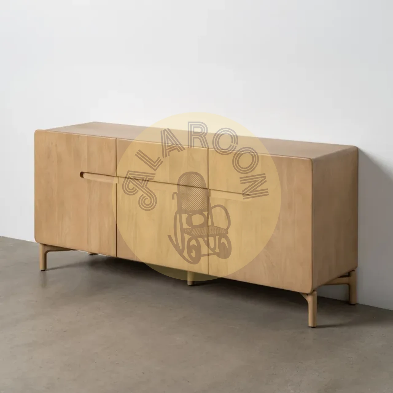 Fabricado en madera de mango, este aparador destaca por su diseño moderno y líneas limpias, pensado para integrarse con naturalidad en espacios contemporáneos y elegantes. Su estructura sólida y acabados cuidados lo convierten en una pieza duradera y visualmente atemporal.