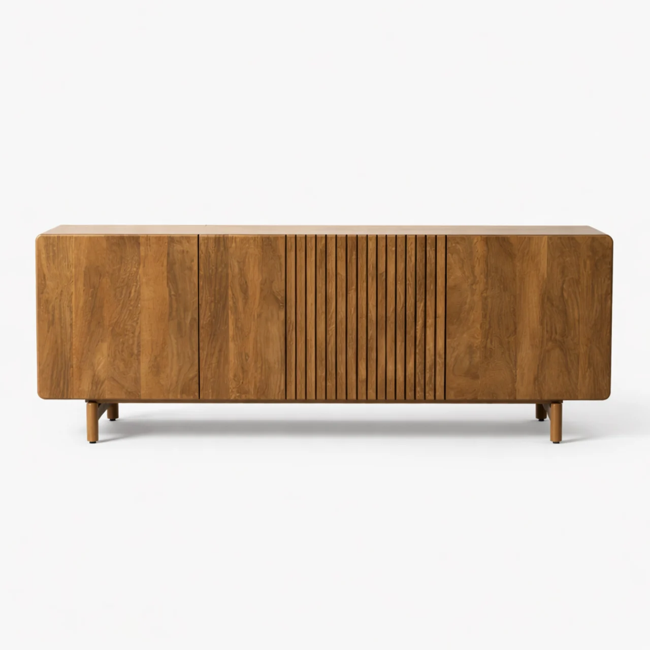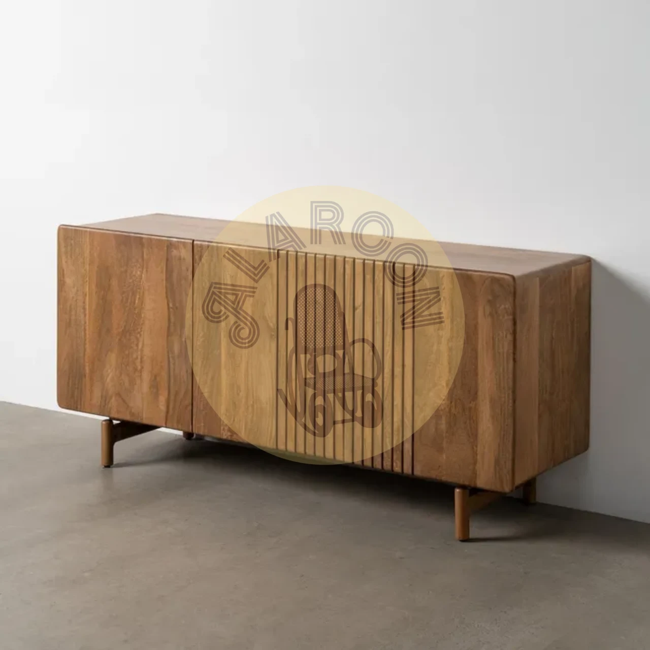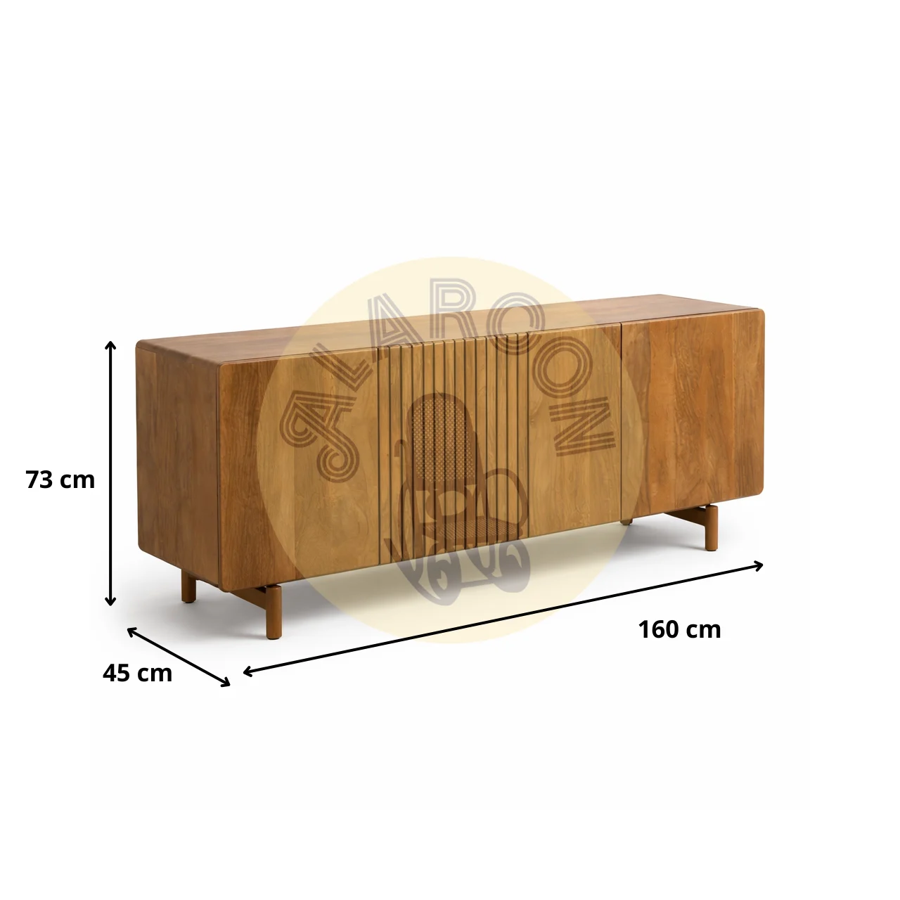 Este aparador de madera de mango destaca por su diseño moderno y su presencia sólida, ideal para interiores que buscan estilo y funcionalidad sin excesos. Su estructura robusta y líneas limpias lo convierten en una pieza protagonista para salones o comedores contemporáneos.