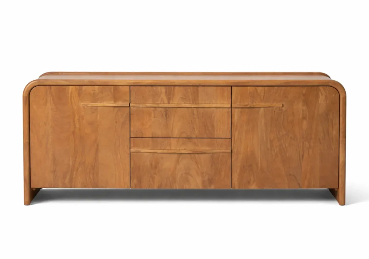 Este aparador de madera de mango destaca por su diseño moderno, líneas limpias y una estética cálida que encaja en salones, comedores o espacios abiertos. Fabricado en madera maciza, aporta calidad, robustez y un acabado natural que refuerza la personalidad del mobiliario contemporáneo.