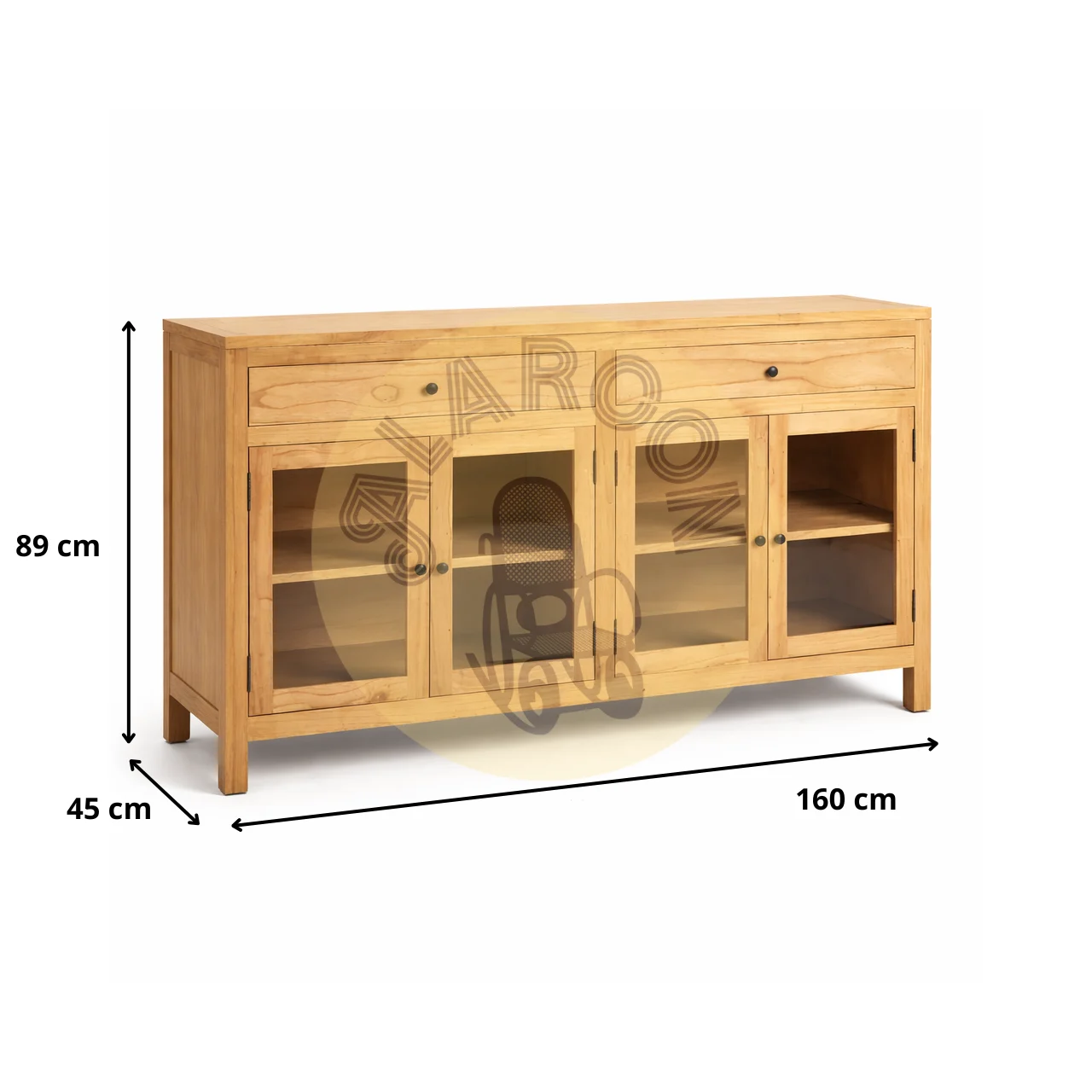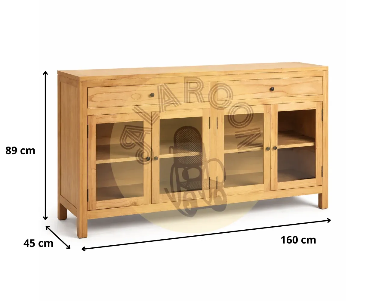 Con unas medidas de 160 x 45 x 89 cm, este aparador de madera es una novedad perfecta para quienes buscan un mueble funcional y decorativo, fabricado en mindi natural, pensado para durar y revalorizar cualquier espacio con un estilo auténtico.
