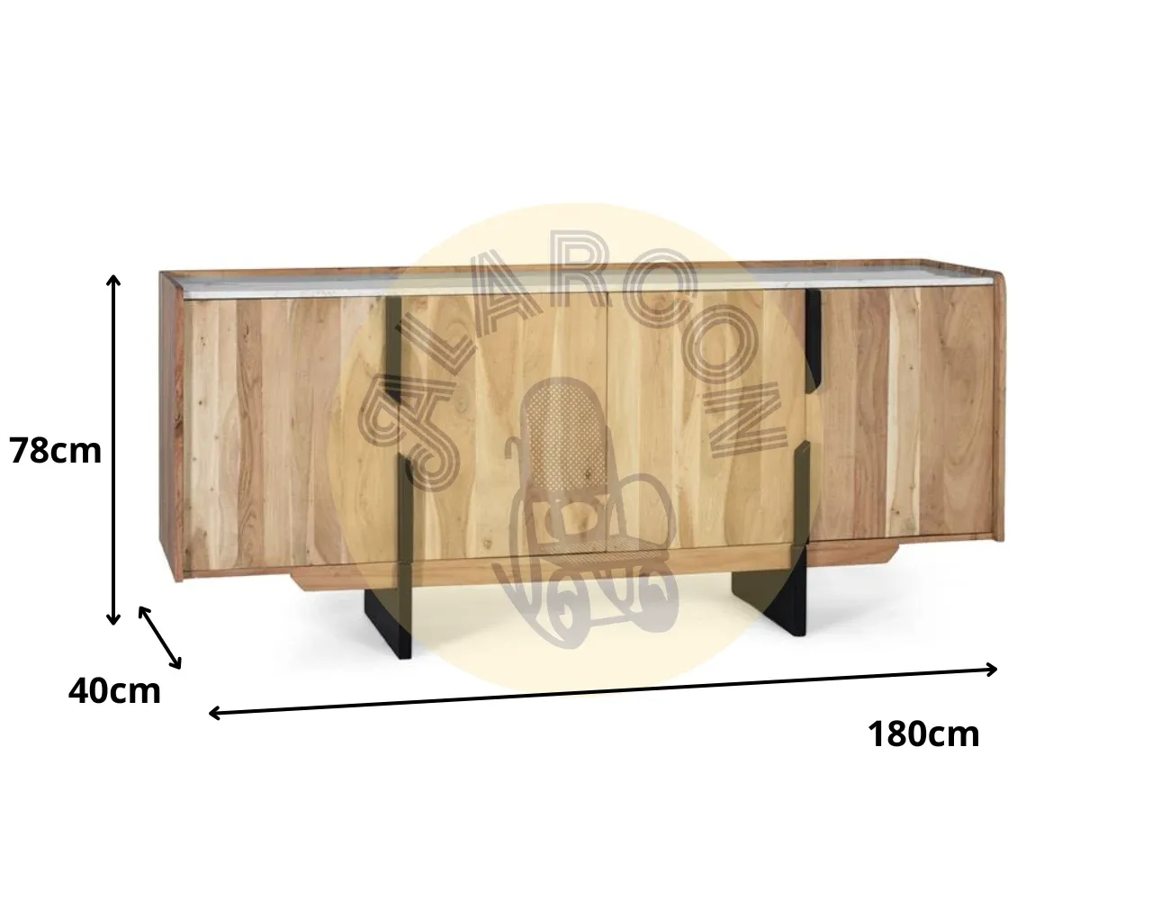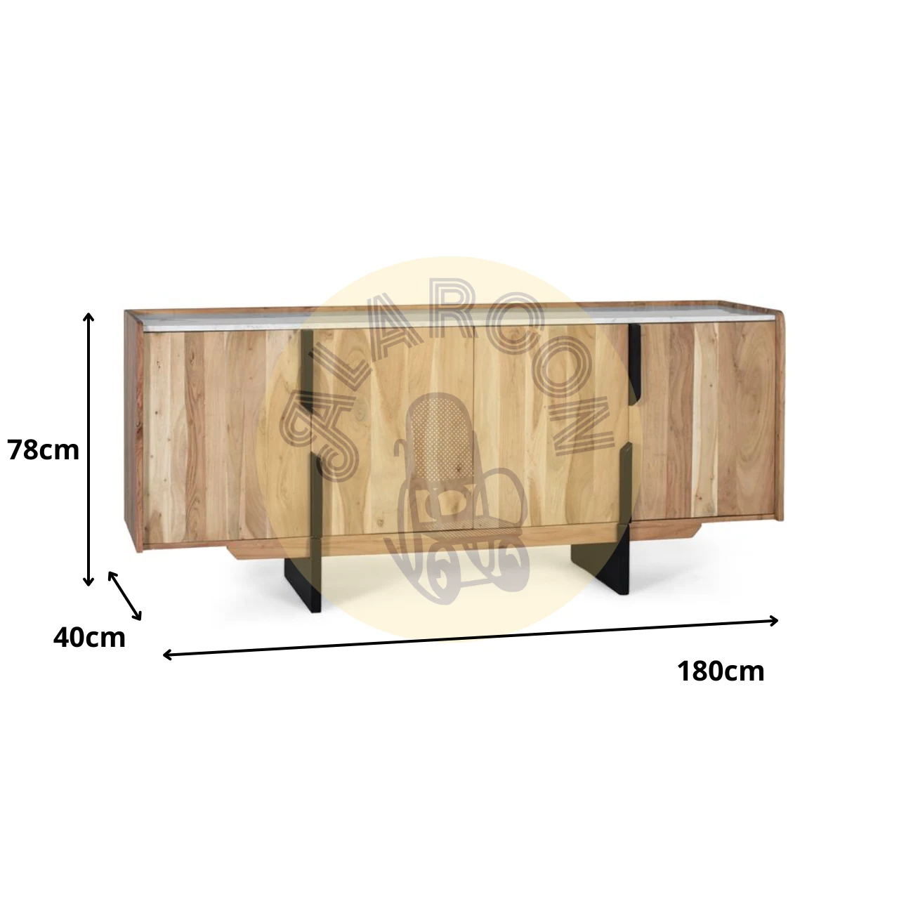 Con un tamaño de 180 cm de largo, 78 cm de alto y 40 cm de ancho, este mueble ofrece un amplio volumen perfecto para salones, comedores, entradas o despachos, adaptándose con facilidad a diferentes ambientes decorativos.