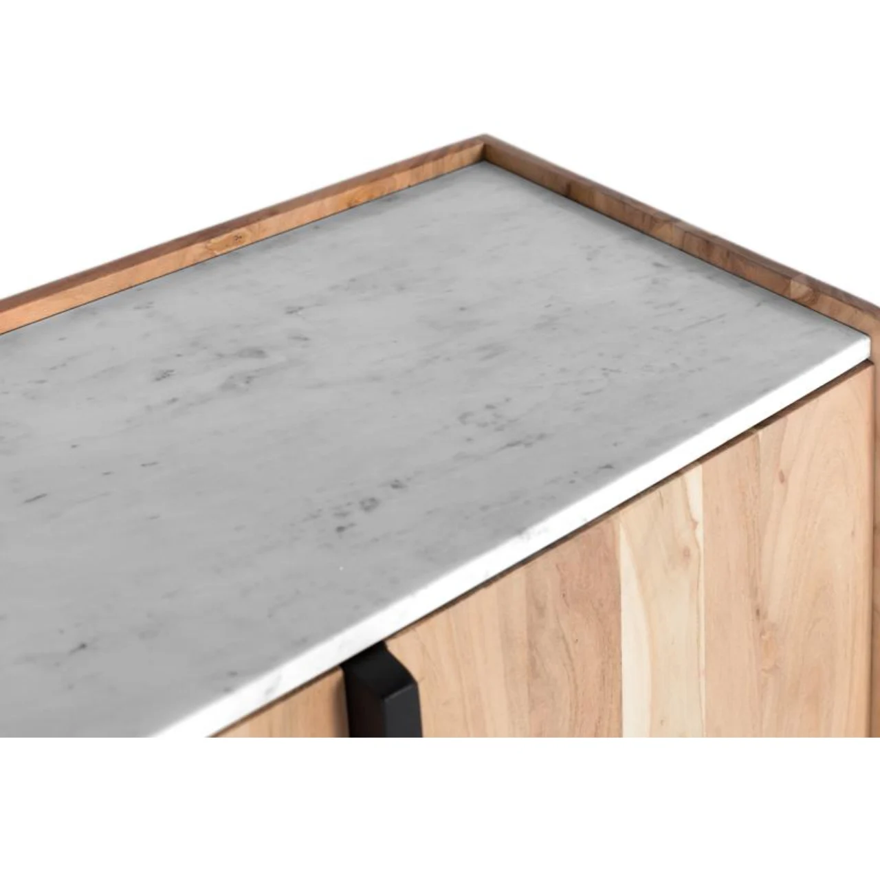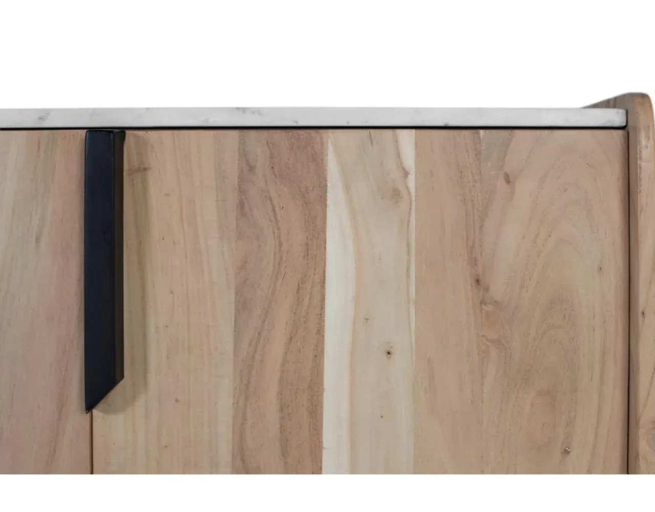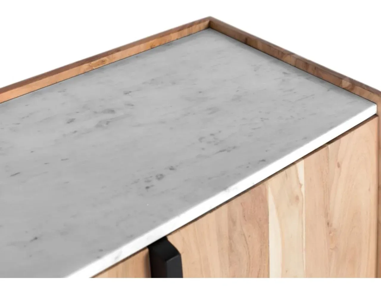 Este aparador de diseño contemporáneo combina la calidez de la madera maciza de acacia con la elegancia de una tapa de mármol blanco con vetas grises, creando una pieza única y sofisticada para tu hogar. Sus líneas limpias y acabados naturales destacan las vetas auténticas de la madera, aportando carácter a cualquier espacio.
