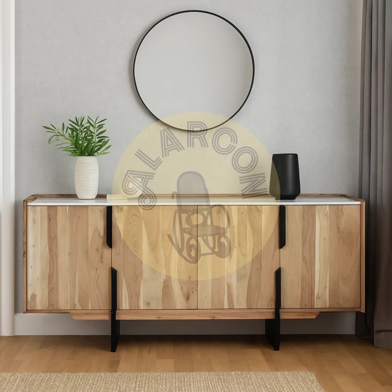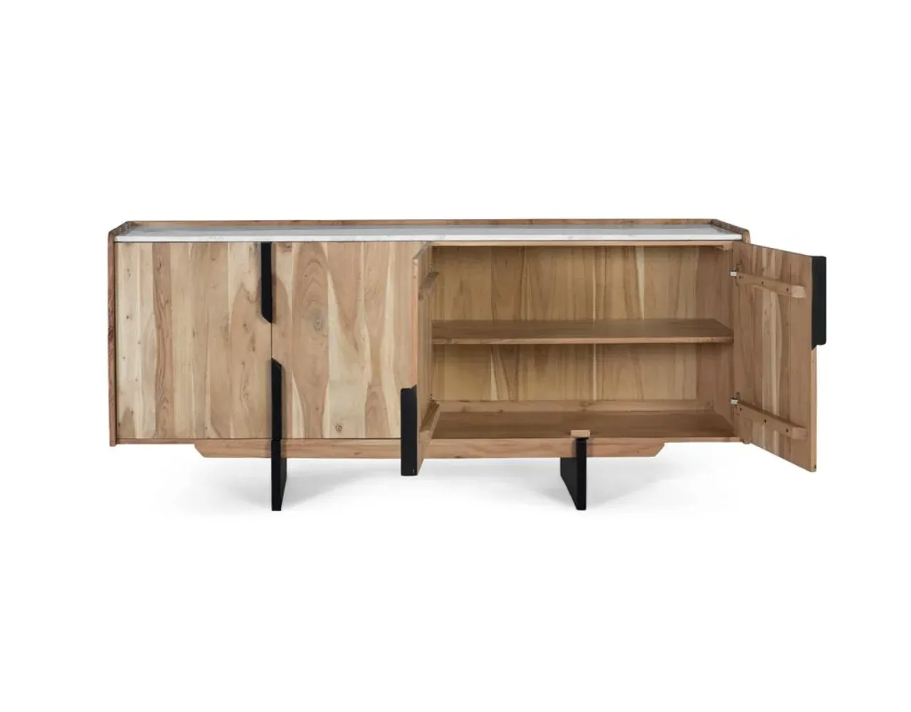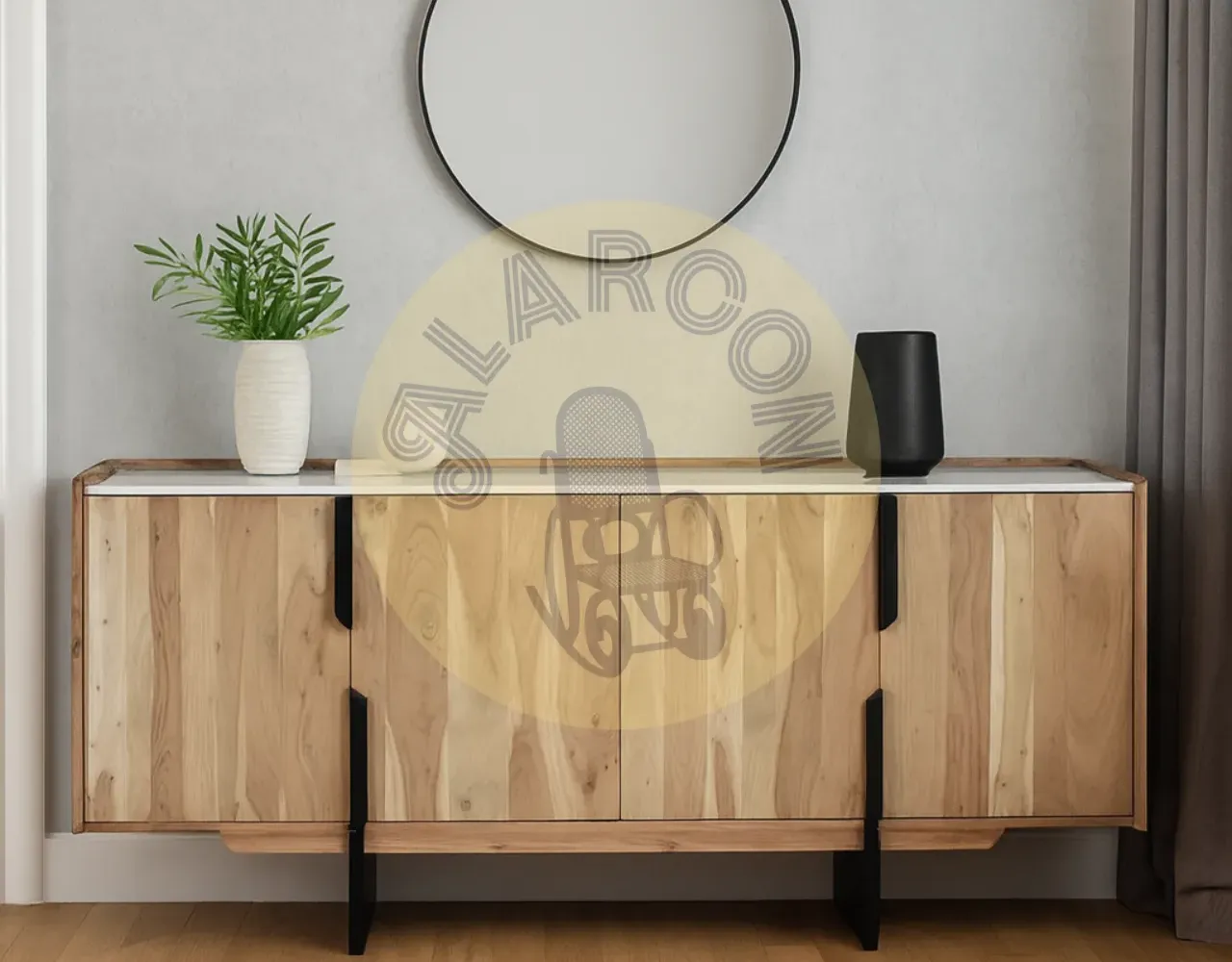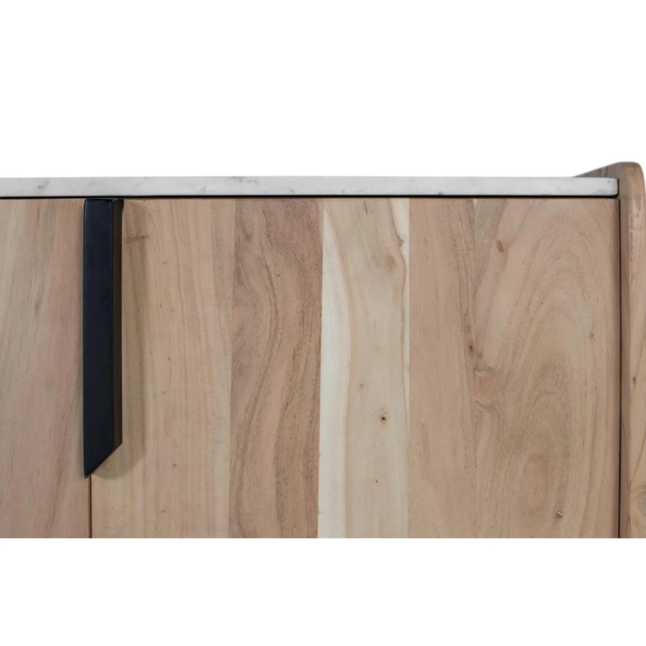 Este aparador de diseño contemporáneo combina la calidez de la madera maciza de acacia con la elegancia de una tapa de mármol blanco con vetas grises, creando una pieza única y sofisticada para tu hogar. Sus líneas limpias y acabados naturales destacan las vetas auténticas de la madera, aportando carácter a cualquier espacio.