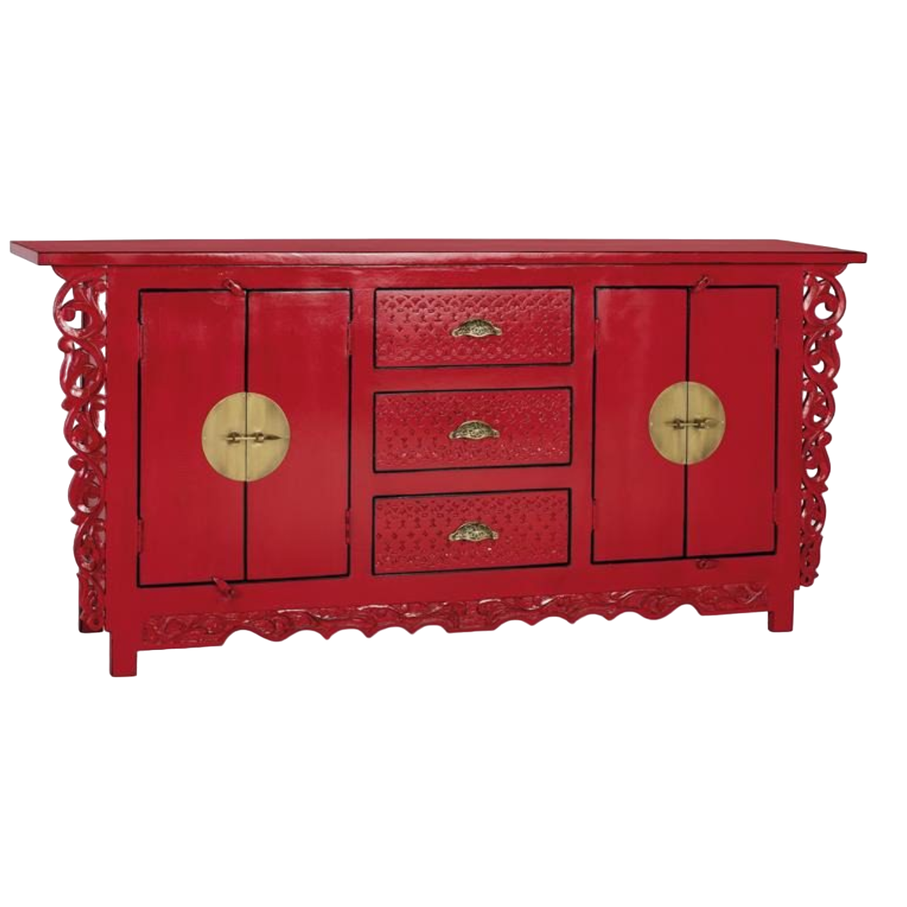 Descubre la funcionalidad y estética de este aparador 2 puertas y 3 cajones, elaborado con la resistencia y belleza intrínseca de la madera de mango. Deleita tus sentidos con su color rojo, agrega un toque de calidez a cualquier espacio de tu hogar.