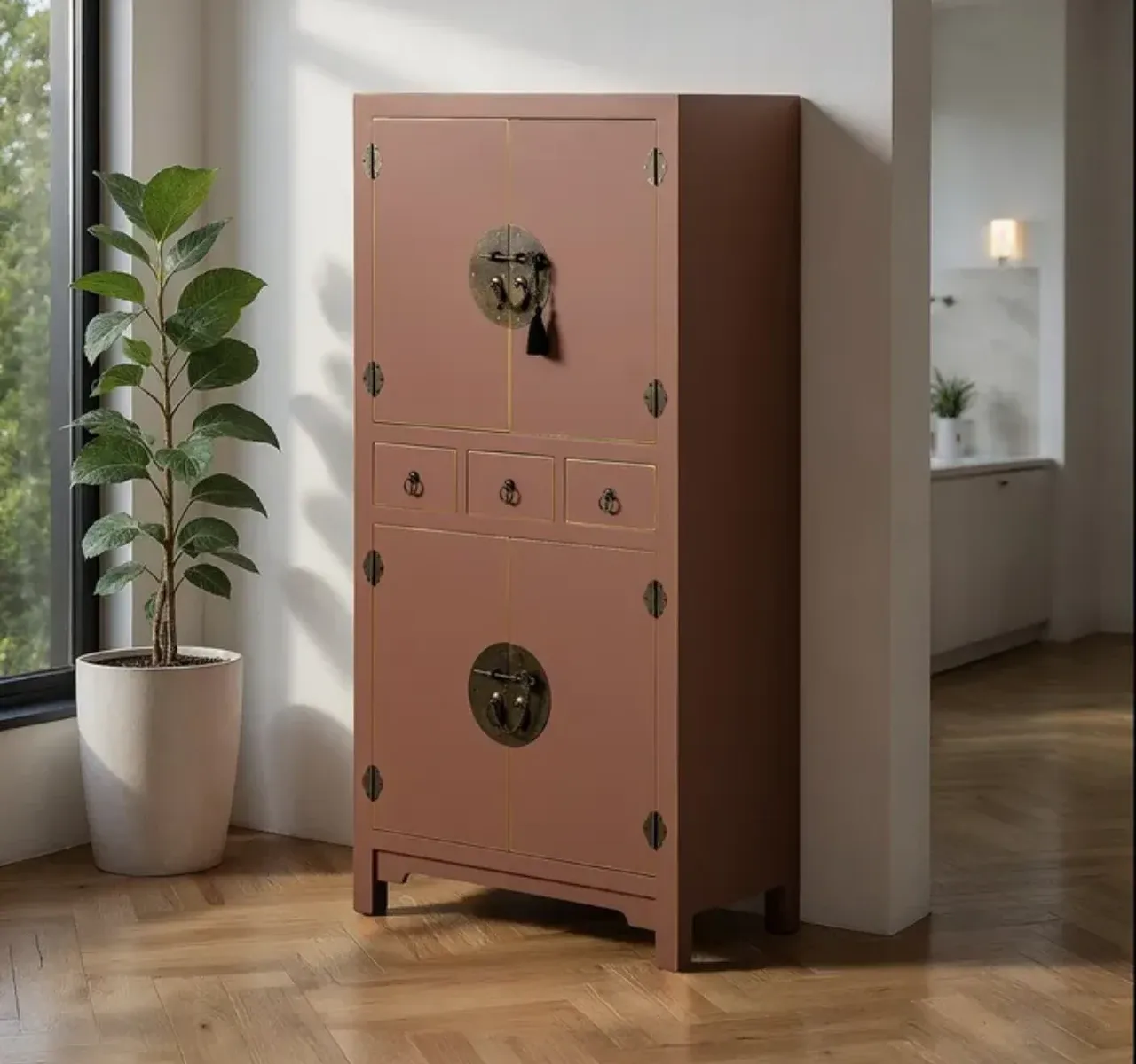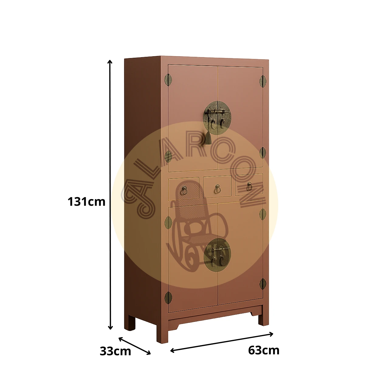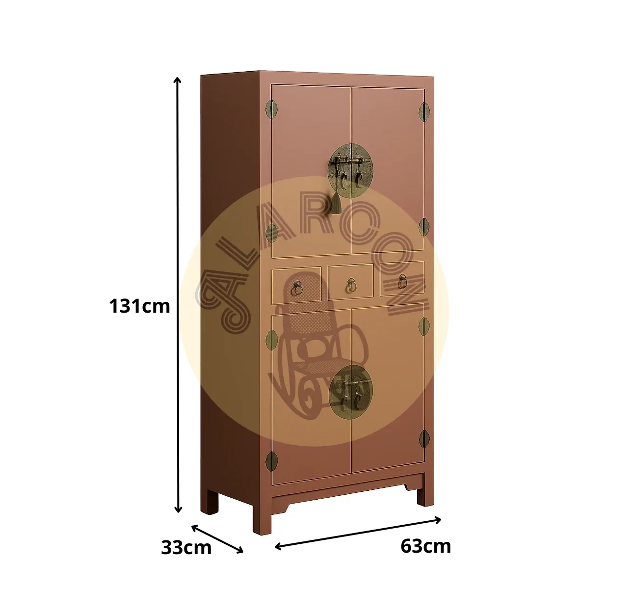 Este aparador oriental de madera DM destaca por su diseño atemporal y su acabado cuidado, ideal para añadir un toque distintivo a cualquier estancia. Sus cajones y puertas ofrecen un espacio práctico para organizar con estilo.