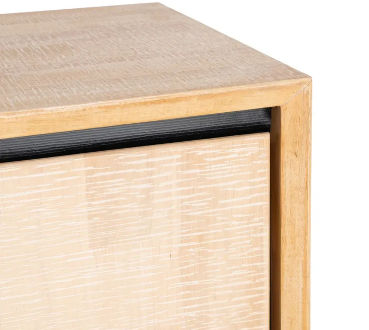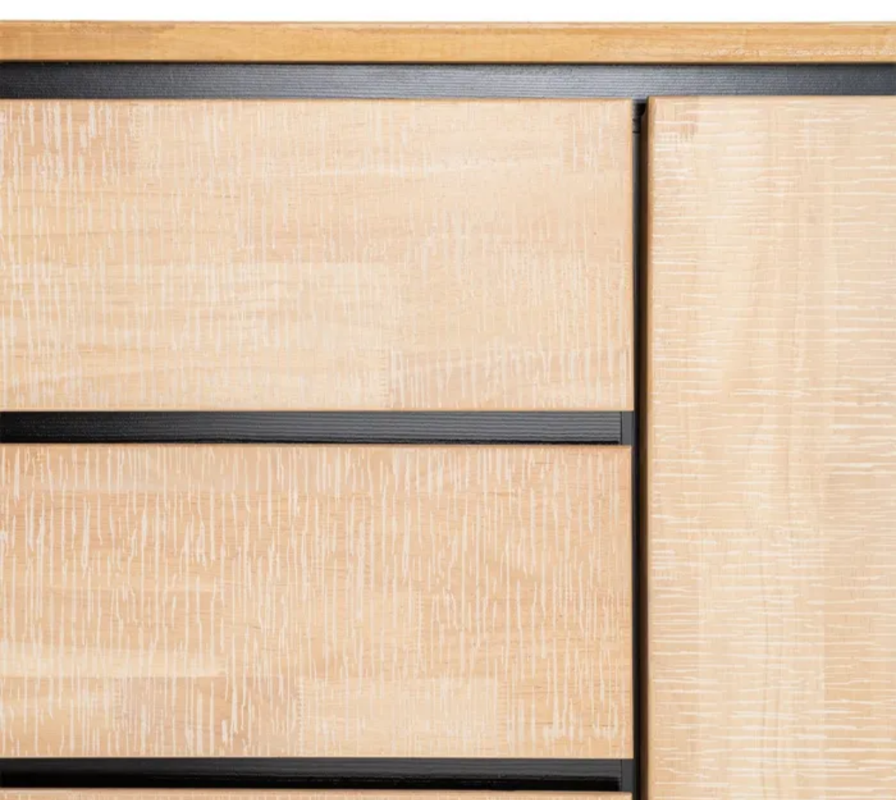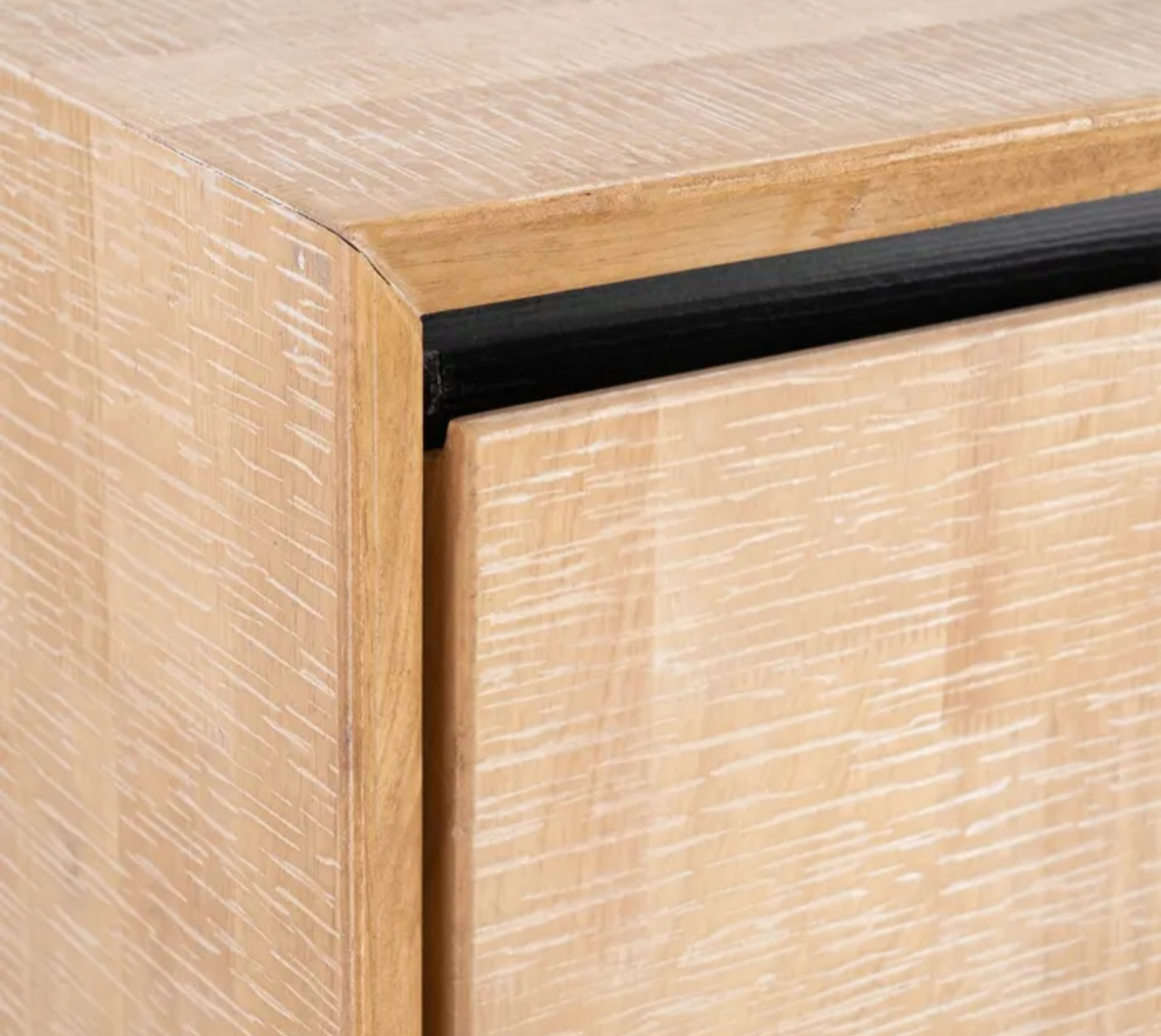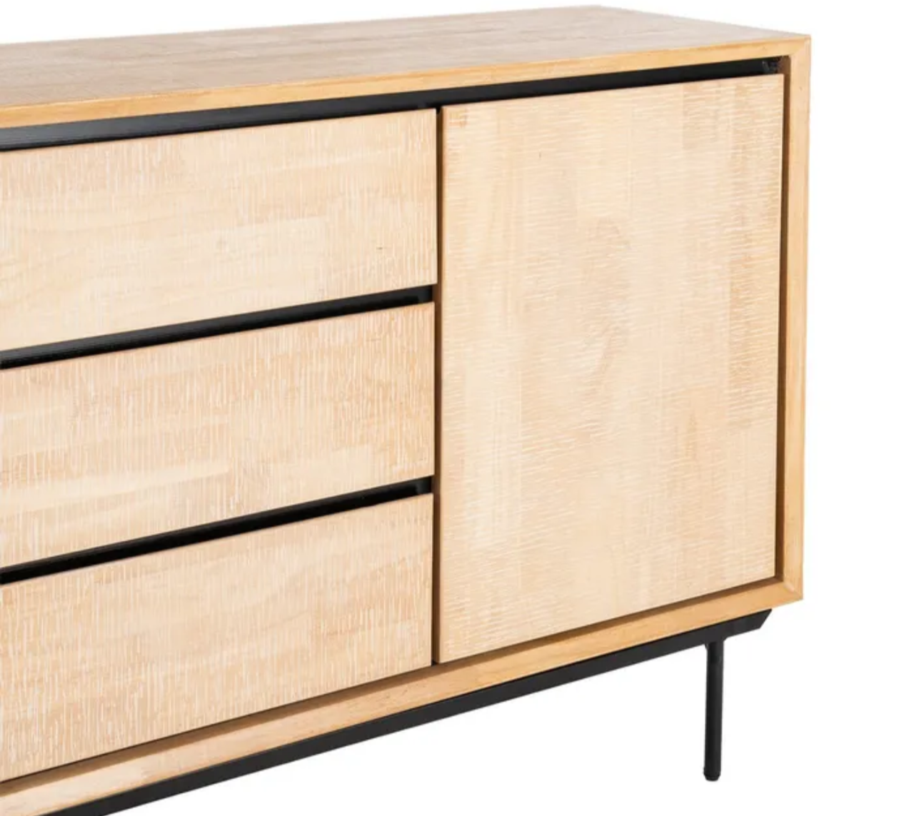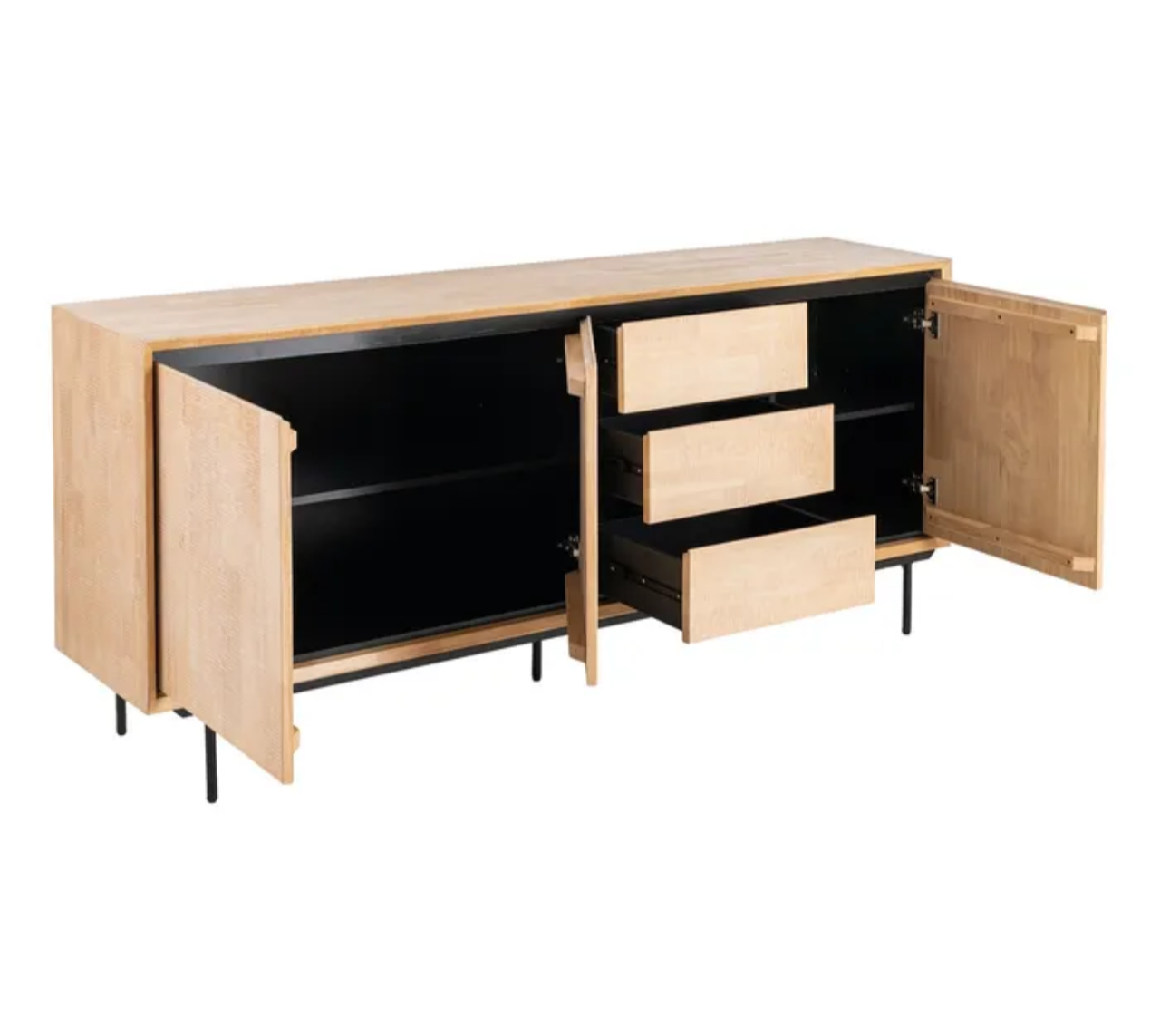 Pensado para espacios actuales, este aparador SINTRA combina madera y metal en un diseño limpio que aporta estilo sin recargar. Su acabado en color natural con detalles en negro resalta la textura del material y encaja con ambientes modernos o cálidos.