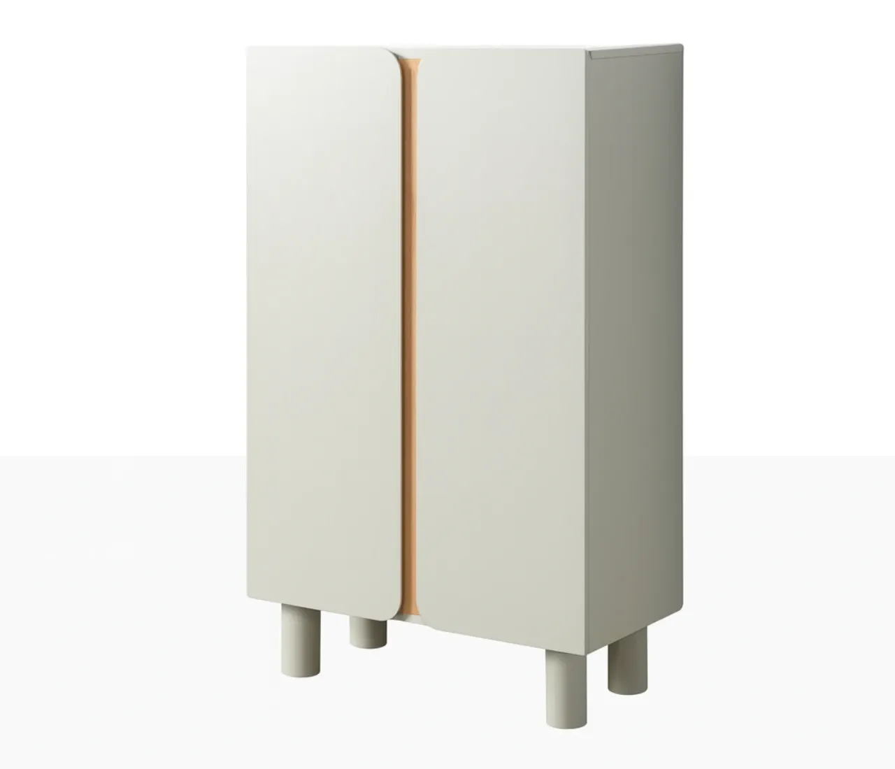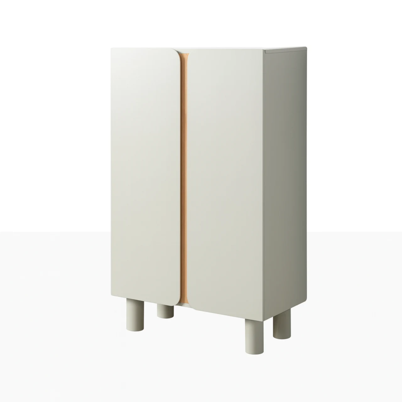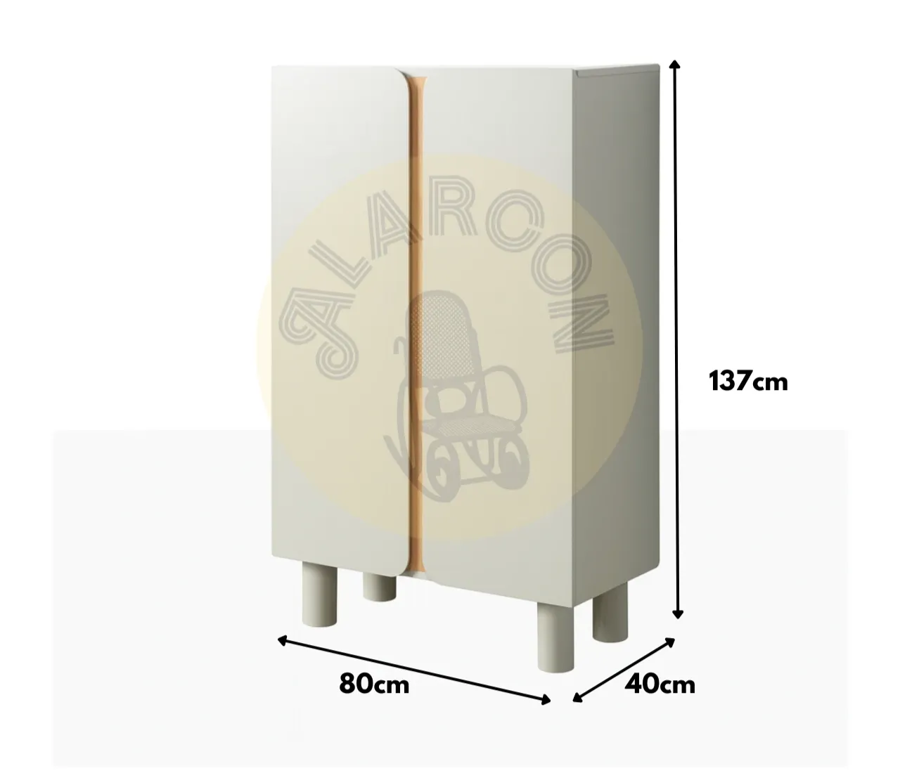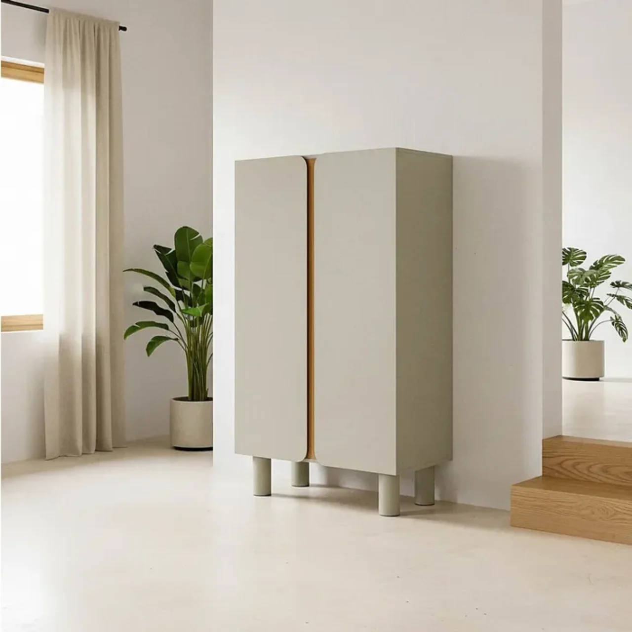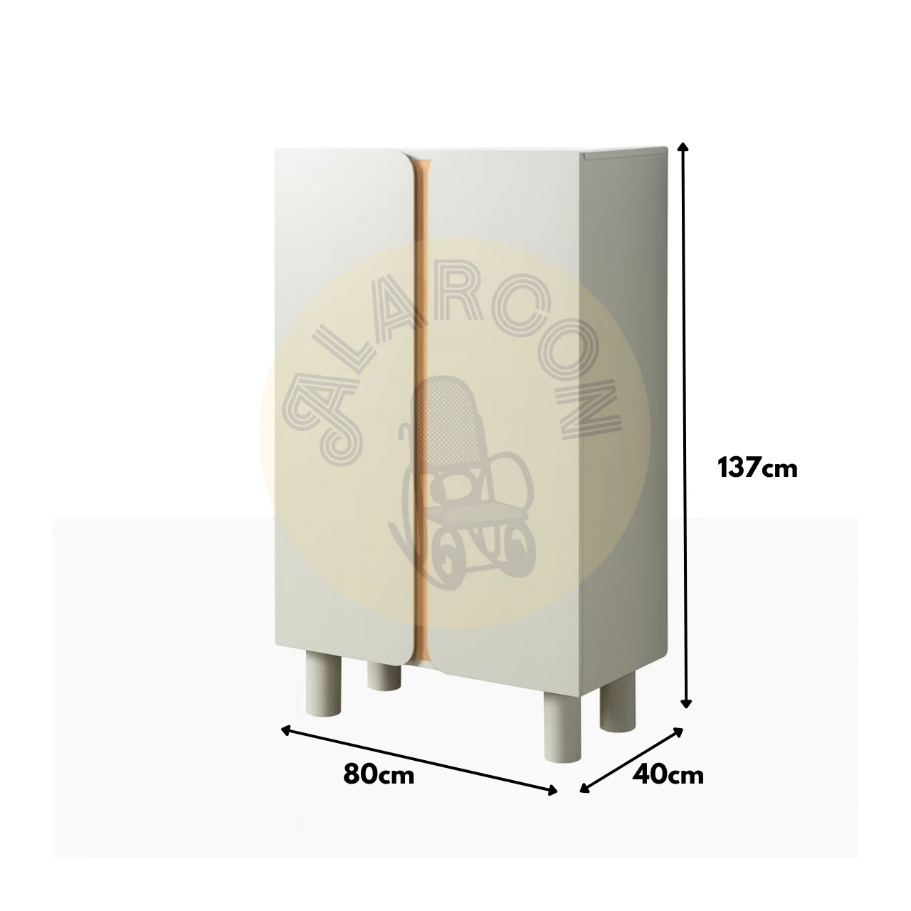 Su estructura incorpora puertas de 38 x 120 cm, ideales para mantener el orden con un estilo funcional y sofisticado. Las patas de 17 cm elevan el mueble, aportando ligereza visual.