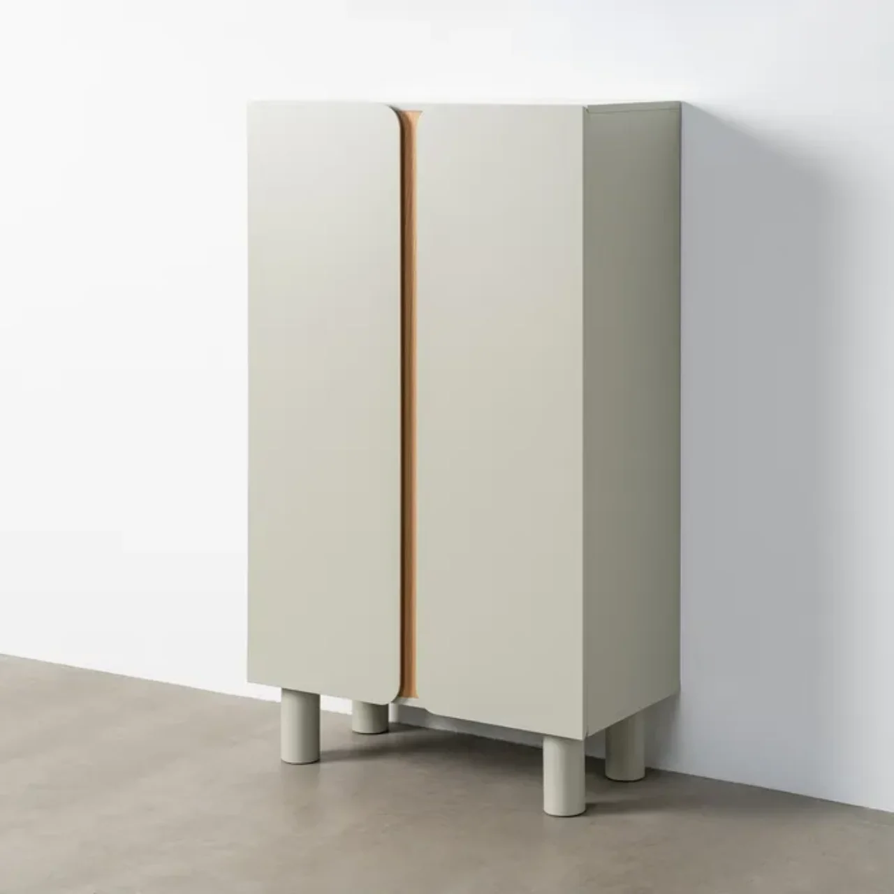El armario Malta está fabricado en DM con patas de madera de roble, ofreciendo un diseño contemporáneo en color taupe que aporta elegancia y modernidad a cualquier espacio.