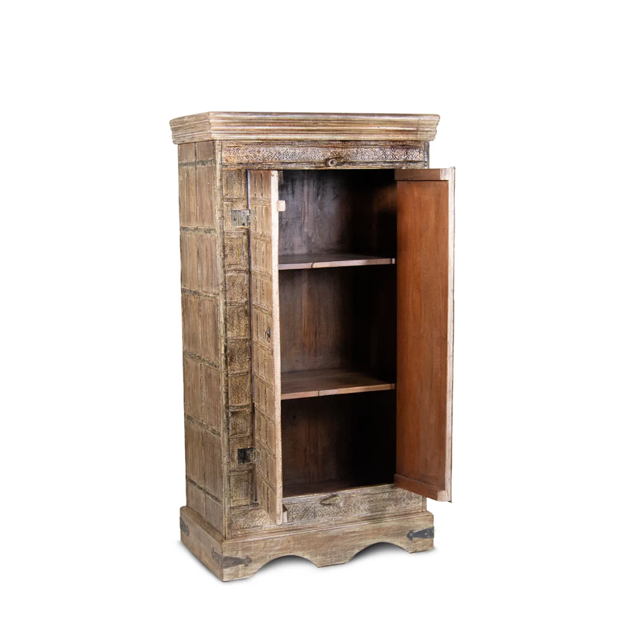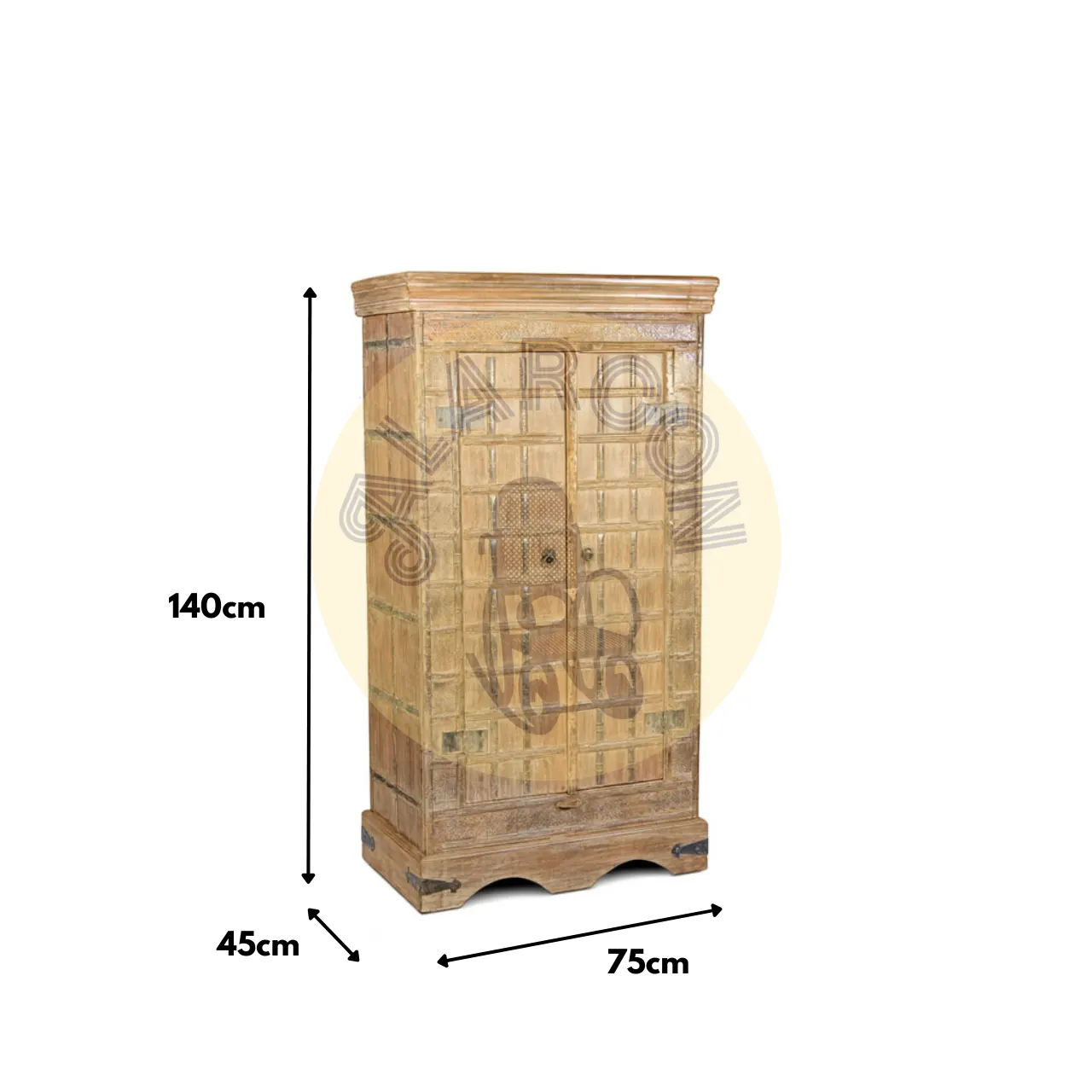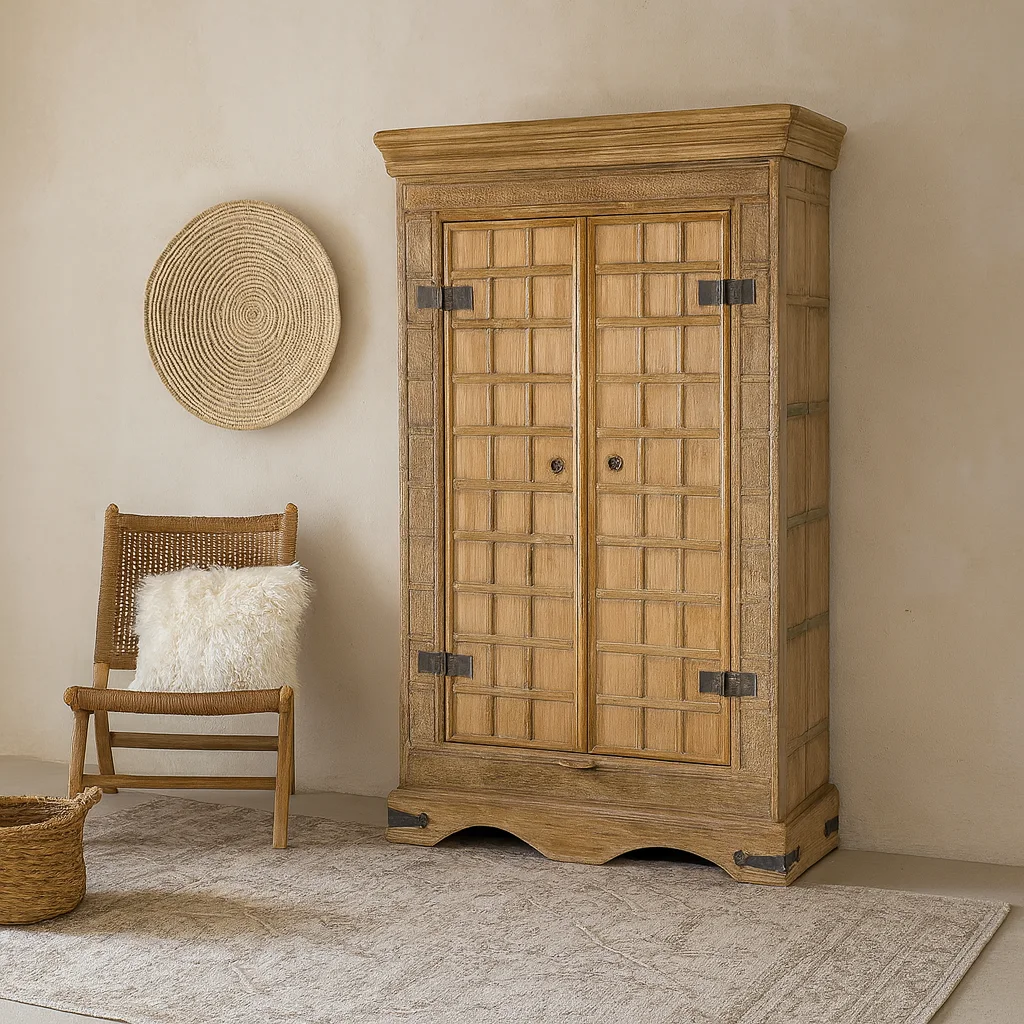 Este armario de madera de acacia con estructura de hierro destaca por su estilo artesanal, ofreciendo una pieza resistente y con carácter que realza cualquier estancia del hogar.