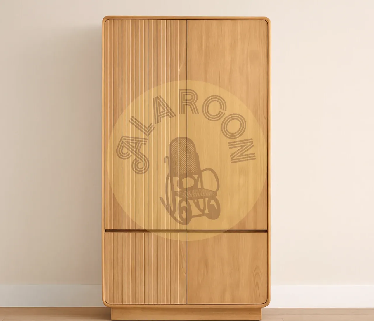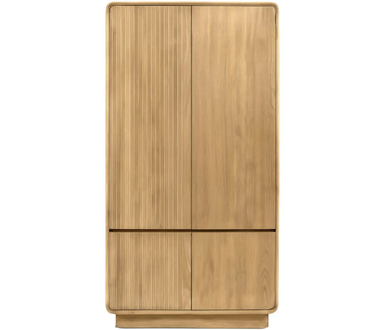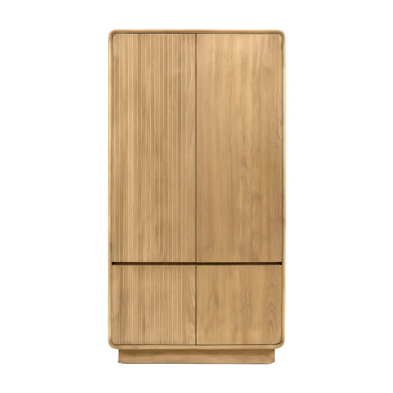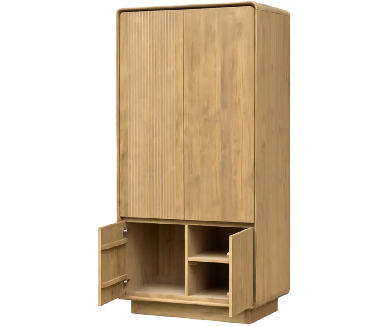El armario Eyre combina diseño natural y funcionalidad en una pieza única de madera de teca maciza. Su acabado cálido y vetas naturales aportan un toque auténtico que realza cualquier ambiente, desde dormitorios hasta salones modernos.