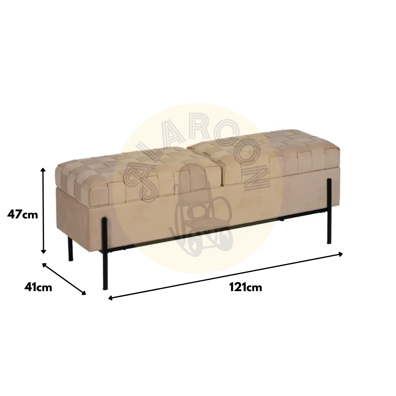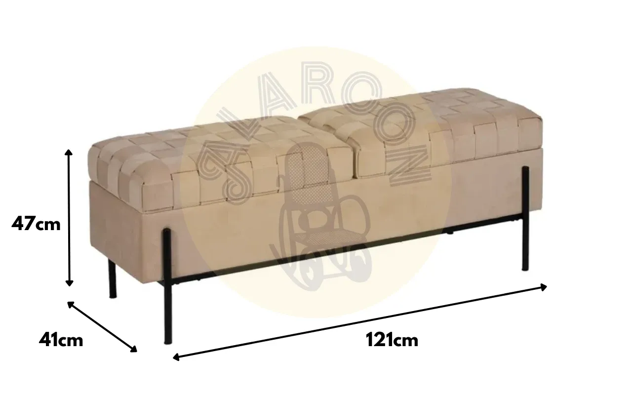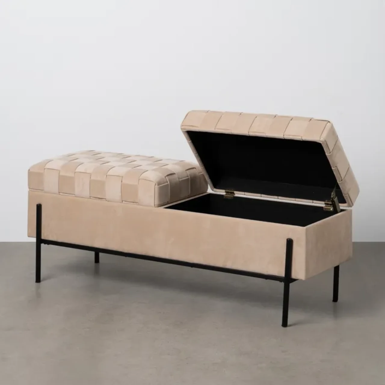 El asiento acolchado con foam de 30 mm ofrece comodidad, mientras que el acabado en tono beige añade calidez y versatilidad decorativa a cualquier estancia.