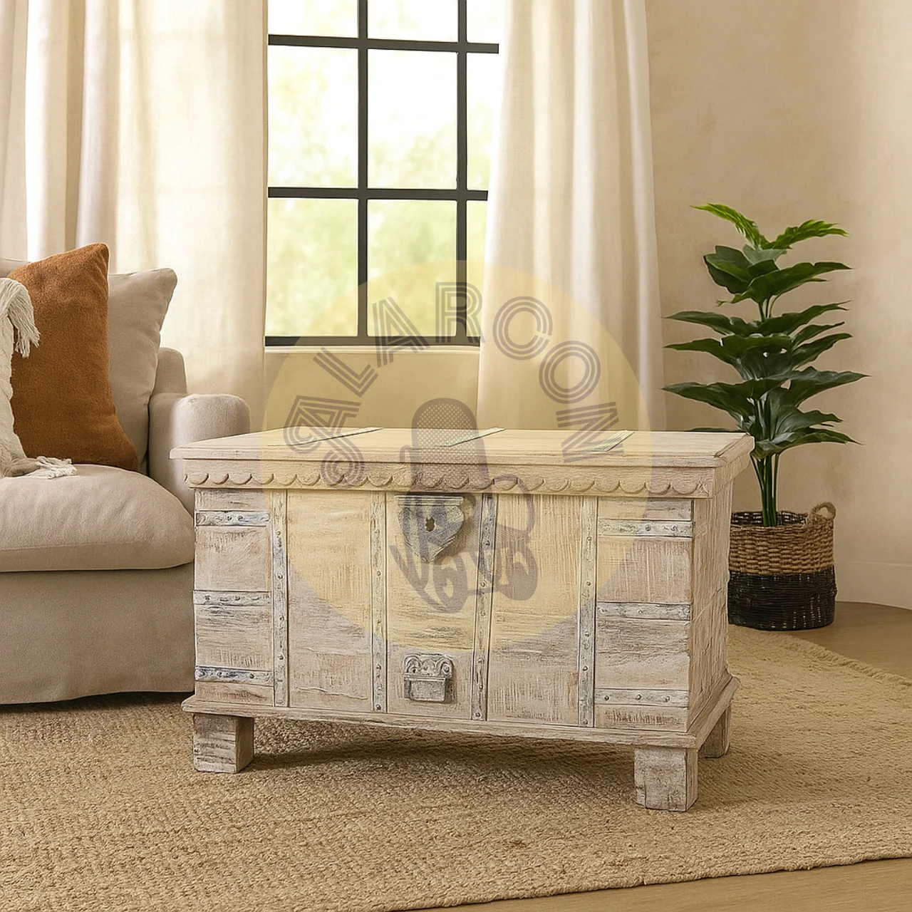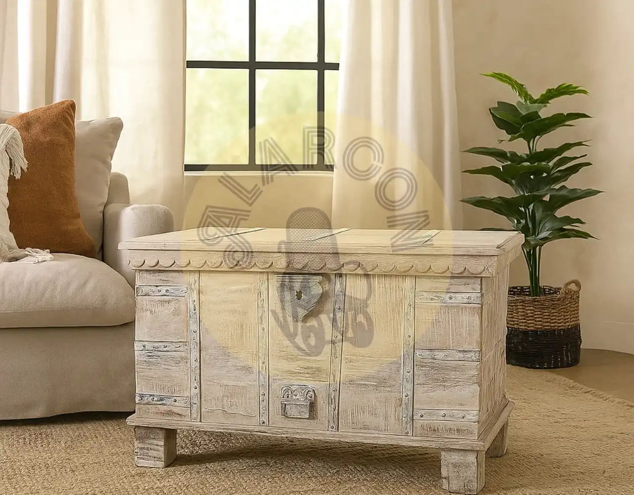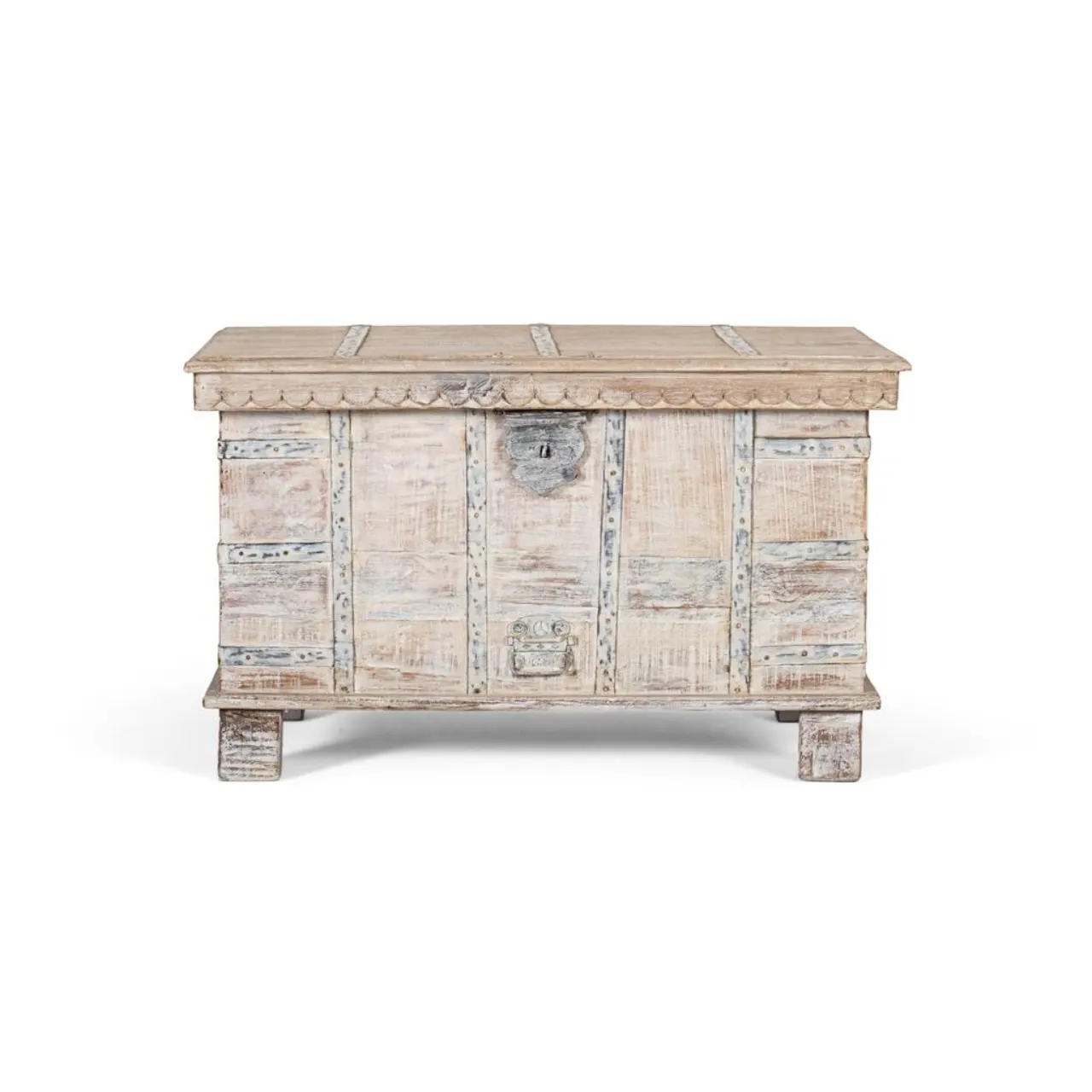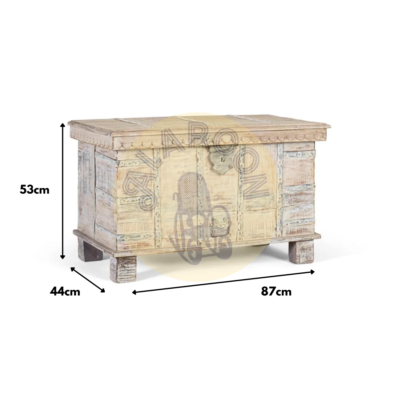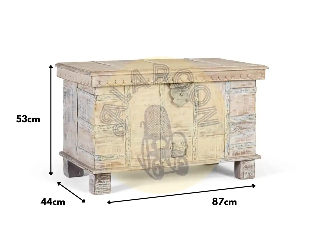 Su estructura robusta y la cerradura decorativa frontal no solo aportan autenticidad, sino que también convierten este mueble en un punto focal con presencia. Ideal para guardar textiles, libros u objetos personales, ofrece funcionalidad sin comprometer el estilo.